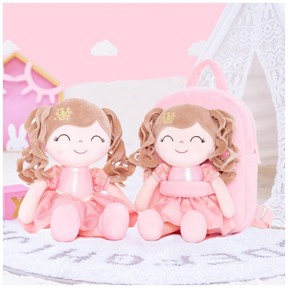 Gloveleya Mochila Infantil Plush Princesa Coroa Rosa – Super Macia e Colorida para Meninas – 23 cm