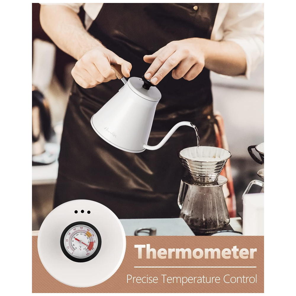 Gooseneck Chaleira de Água 1.1L com Termômetro e Cabo Anti Calor Aço Inox Branca HARRIET Branco