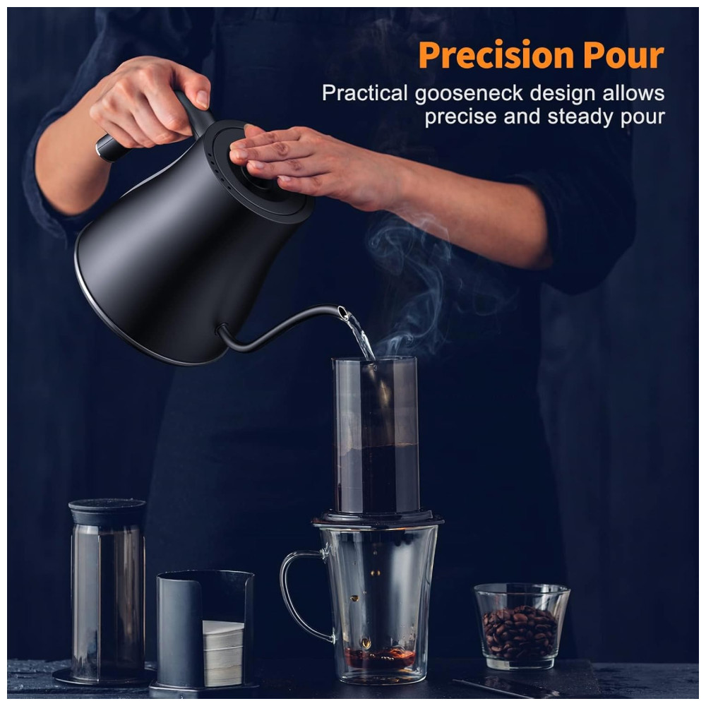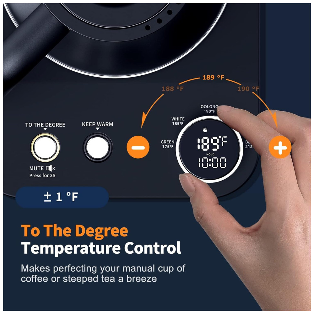 Projetado na Califórnia. Com 5 configurações de calor pré definidas e controle de temperatura de nível permite que você ferva água a uma temperatura específica para atender a uma variedade de bebidas. Também tem controle de temperatura preciso 1F para você ajustar a temperatura entre 37 C a 100 C, tornando esta chaleira de água perfeita para despejar café ou chá de folhas soltas