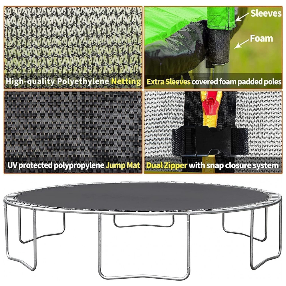 Salte para se divertir e se exercitar Saltar é uma ótima maneira de queimar calorias enquanto se diverte muito. Pode melhorar a força, densidade óssea, agilidade, equilíbrio e coordenação do seu filho. Com o trampolim grande, seus filhos também podem ficar longe dos eletrônicos. Trampolim resistente para crianças e adultos A estrutura utiliza aço reforçado com uma junta em T, tornando o trampolim grande uma base sólida e rígida e um salto mais suave e impressionante e uma carga pesada para crianças e adultos. A estrutura resistente à ferrugem oferece uso a longo prazo. A rede é forte e de boa qualidade. Uso interno e externo Além do exterior, este grande trampolim para crianças também pode ser em ambientes internos, mesmo que esteja chovendo, seus filhos também podem se divertir dentro de casa. A cesta de basquete recreativa adiciona muita diversão para seus filhos. Especificações Peso máximo de carga do trampolim de 16 pés 1.500 libras, para 8 a 10 crianças, limite de uma única pessoa 264 libras Peso máximo de carga do trampolim de 15 pés 1.400 libras, para 7 a 9 crianças, limite de uma única pessoa 264 libras Peso máximo de carga do trampolim de 14 pés 1.200 libras, para 6 8 crianças, limite de pessoa ÚNICA 264 libras Trampolim de 12 pés Peso máximo de carga 1000 libras, para 4 6 crianças, limite de pessoa ÚNICA 264 libras Altura do trampolim 8,86 pés Altura da rede do gabinete 5,9 pés Altura da perna 2,95 pés Construção da estrutura Tapete de salto de aço galvanizado resistente à ferrugem com proteção UV Rede de segurança de polipropileno Almofada de mola de polipropileno Molas resistentes a UV Resistente às intempéries Aço galvanizado Certificação ASTM F381 F2225 Aprovado Fácil montagem necessária Sim Informações do pacote O trampolim 16FT 15FT 14 FT virá em 2 caixas de embalagem. O trampolim de 12 pés virá em 1 caixa de embalagem. PS a luz dos acessórios do trampolim com alto falante e outros acessórios NÃO foram colocados na caixa do trampolim. Eles serão enviados separadamente e entregues em sua caixa de correio. Você receberá um pacote pequeno também. Grande capacidade de peso A carga máxima deste trampolim de 12 é de 1.000 libras, pode acomodar de 4 a 6 crianças. Este enorme trampolim para crianças e adultos oferece uma maneira segura e eficaz de se divertir em família enquanto queima calorias e melhora a coordenação geral. Lembre se de que o peso do usuário único não excede 264 LBS, para evitar lesões causadas por força irregular no trampolim Aprovado pela ASTM Trampolim ASTM F381 F2225 Aprovado. Os postes de aço são acolchoados com espuma e mangas, o que pode proteger seus filhos de baterem no poste. O sistema de gabinete possui rede de segurança, acolchoamento protetor para cobrir a mola, ajuda a estabilizar as crianças enquanto elas pulam no trampolim infantil Estrutura de estrutura forte A construção robusta é com juntas em T de aço resistentes à ferrugem, postes de aço verticais, molas aprimoradas de 72 unidades e 6 U pernas fortes em formato, aumentando a estabilidade da estrutura e evitando torções estruturais, mantenha este trampolim de 12 pés com gabinete firmemente plantado no chão enquanto você salta para uma boa saúde Todos os acessórios completos Trampolim Goujxcy de 12 pés A prepara os acessórios que você precisa 1x inflador de bola de borracha, 1x inflador de basquete, 1x escada de trampolim, 1x luzes de trampolim, 1x luzes de discoteca com alto falante, 1x sprinkler de trampolim, 30x bolas de água reutilizáveis, 8x meias 4 pares de meias de trampolim para adultos e 4 pares de meias de trampolim para crianças Fácil de montar Você receberá o trampolim inteiro de uma só vez 1 caixa de pacote. Enquanto o sprinkler de acessórios de trampolim, cordas leves, luz de discoteca com alto falante musical, bola dágua, meias, etc. virão separadamente e em uma pequena caixa. Qualquer problema, não hesite em contactar nos