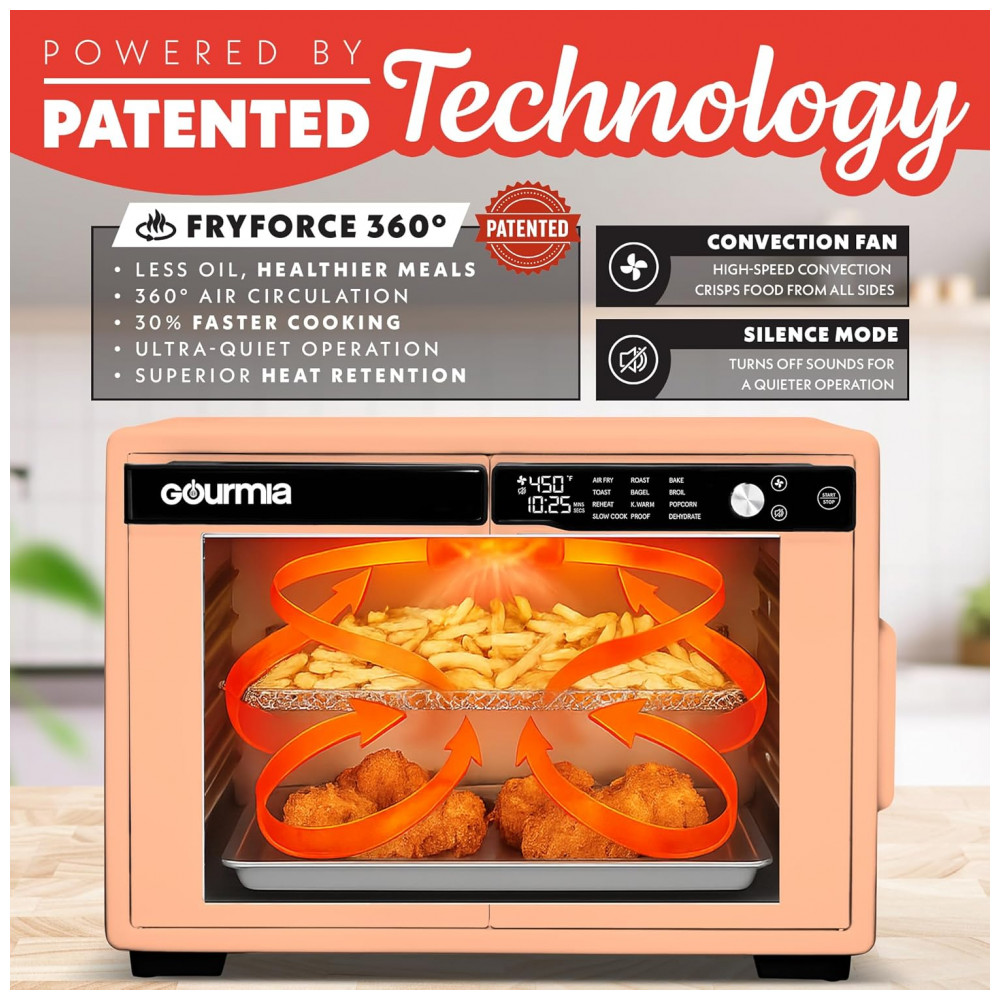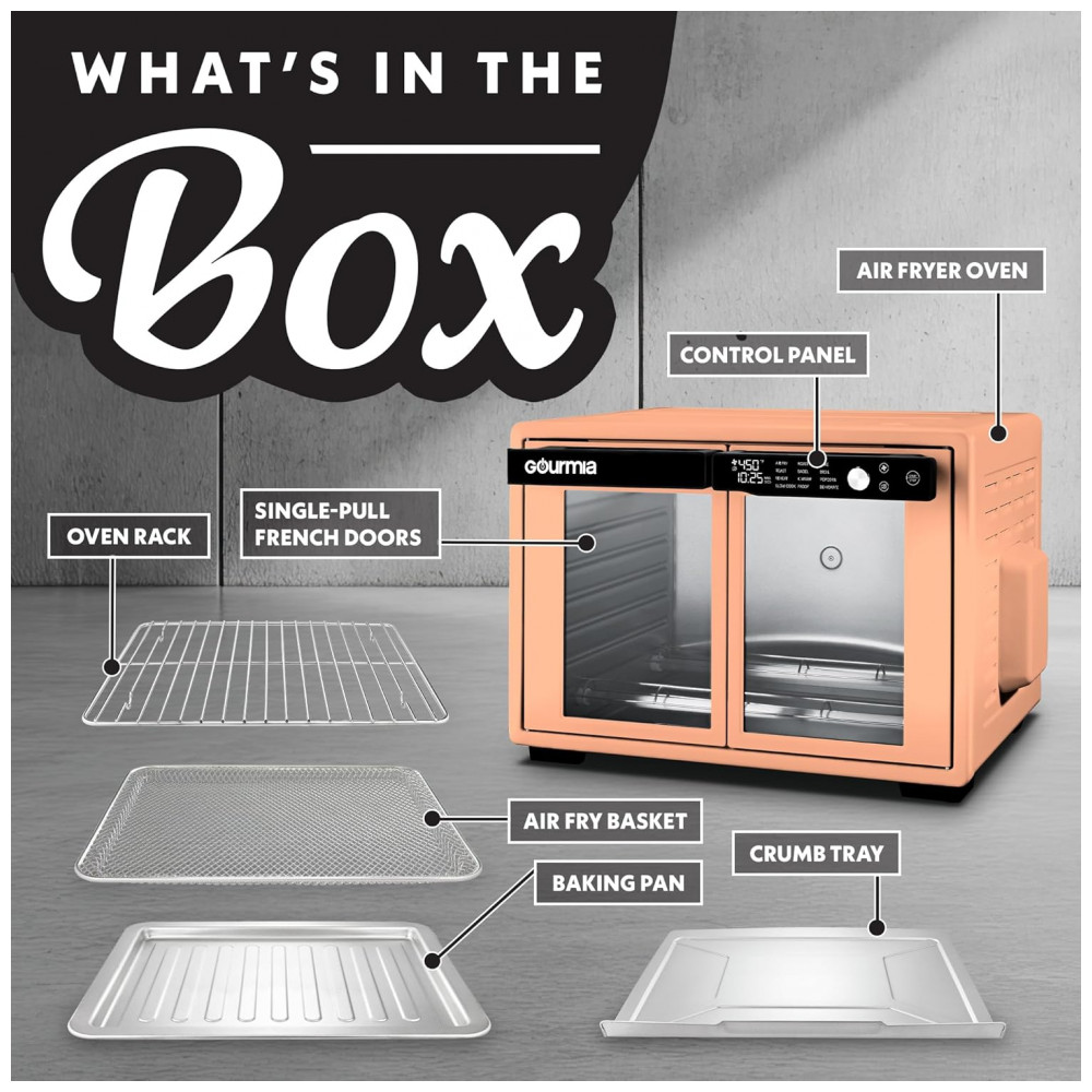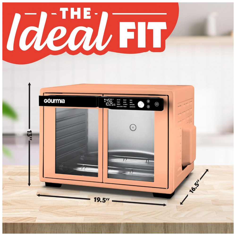 Gourmia Forno Air Fryer French Door 37 Qt Capacidade Grande 12 Funções Display Digital Aço Inox Pêssego