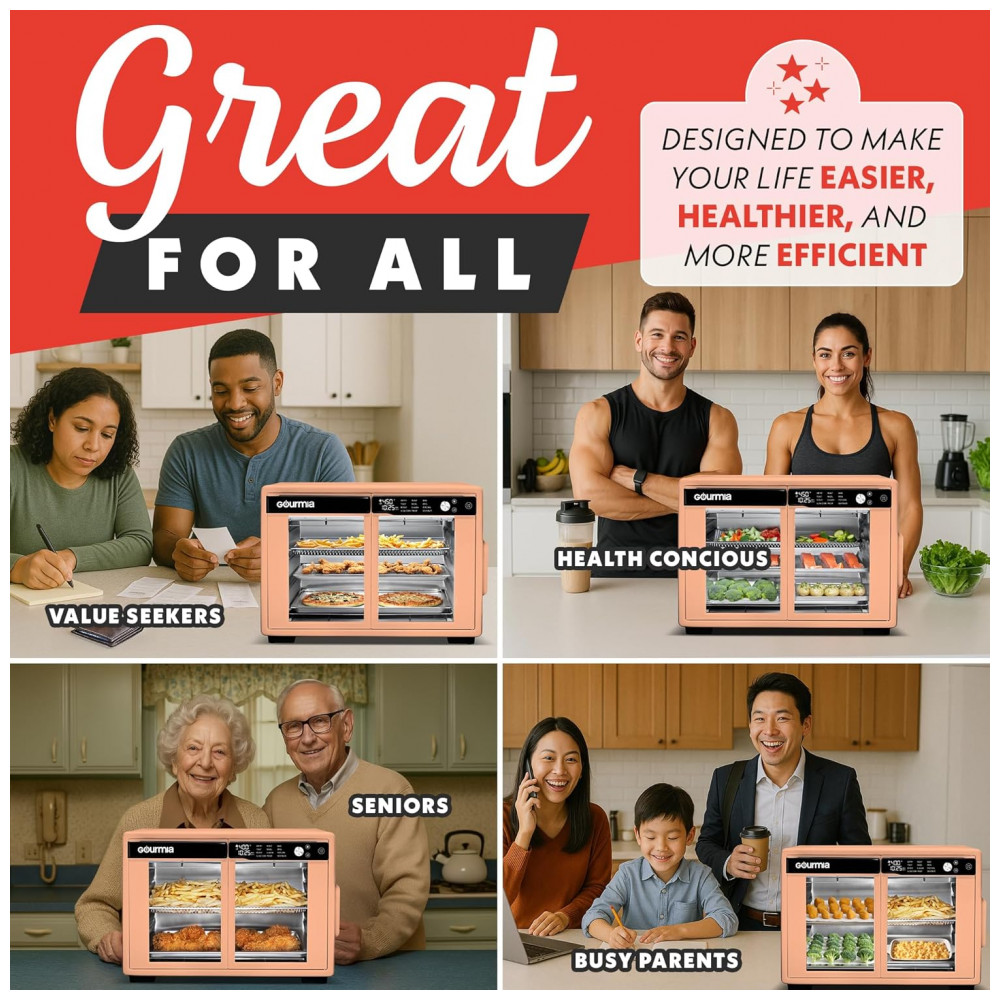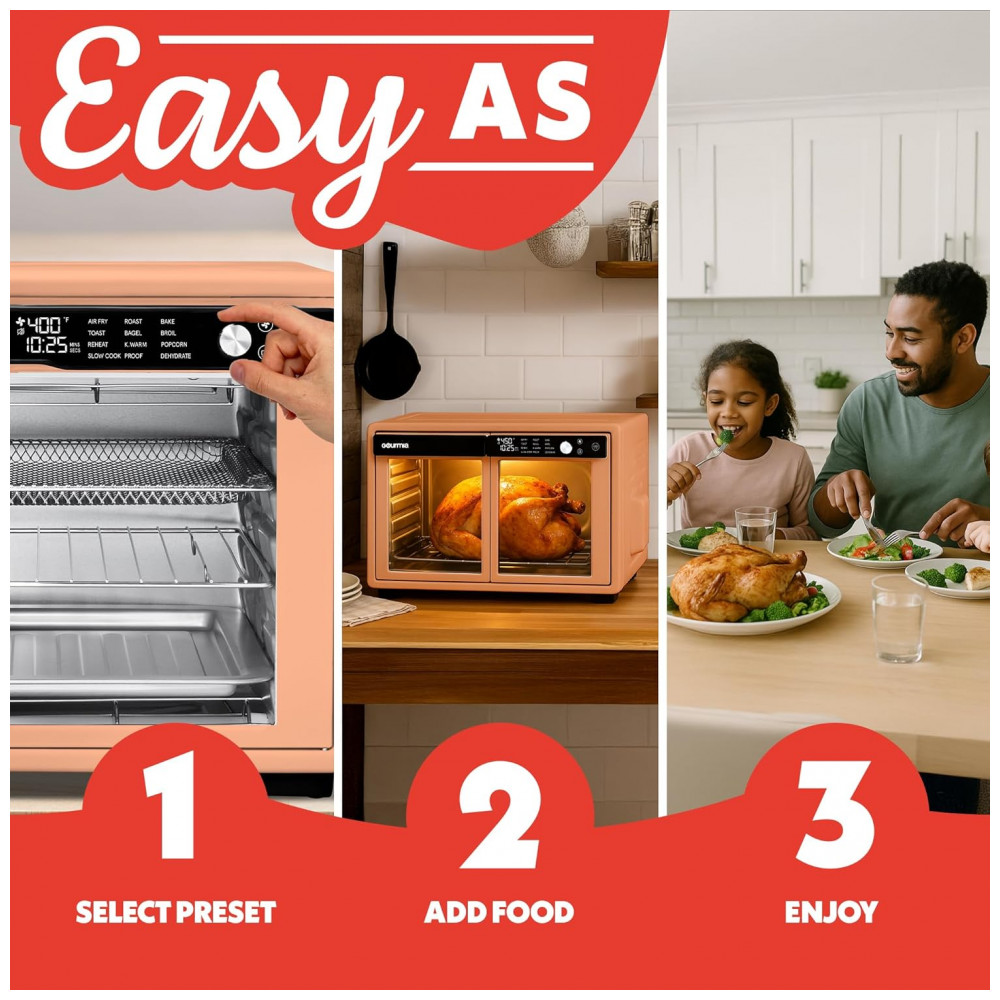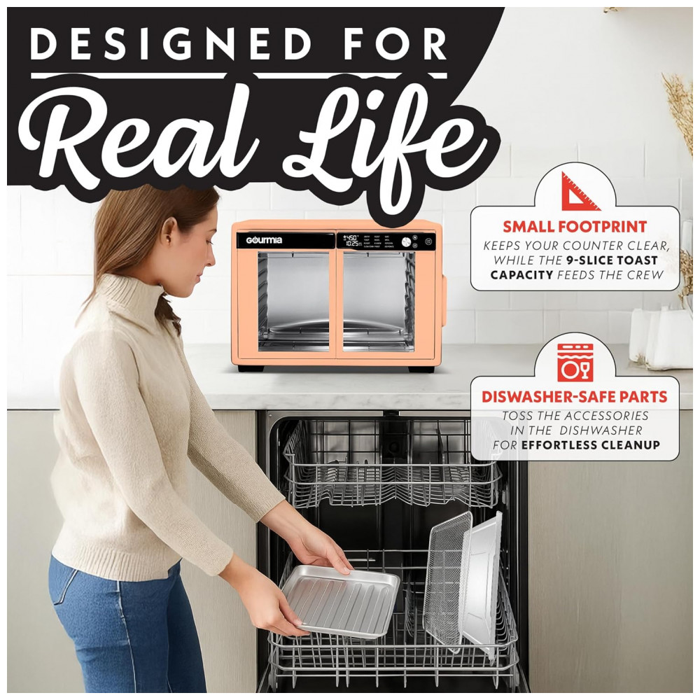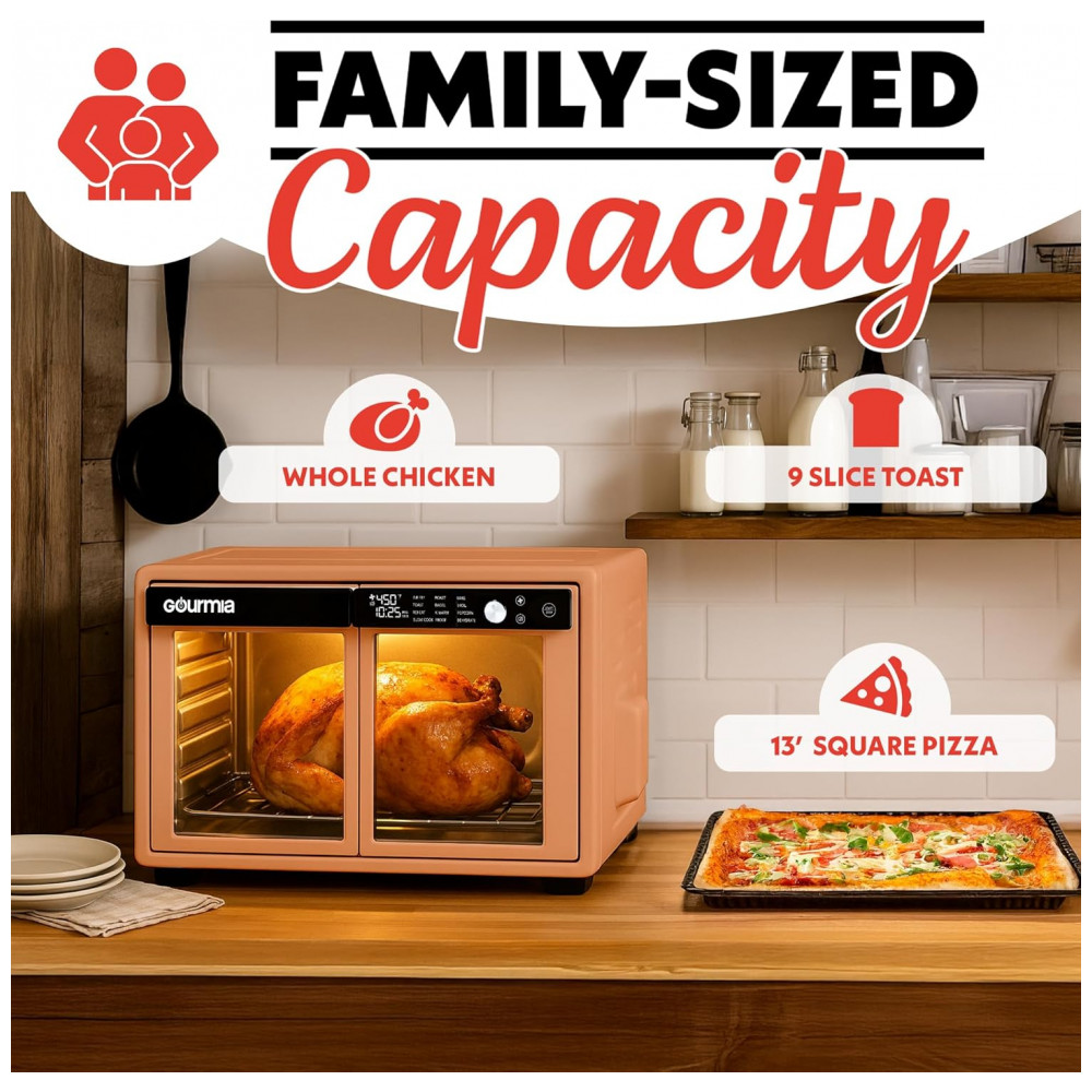Gourmia Forno Air Fryer French Door 37 Qt Capacidade Grande 12 Funções Display Digital Aço Inox Pêssego