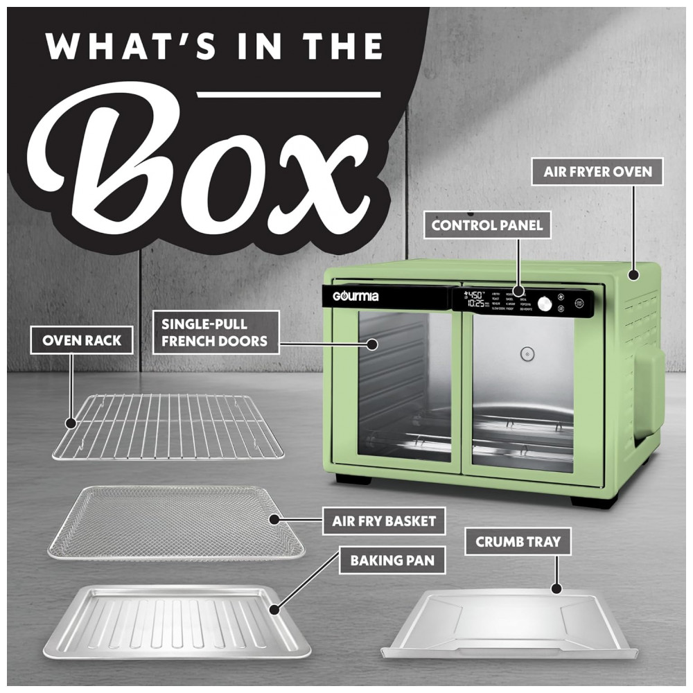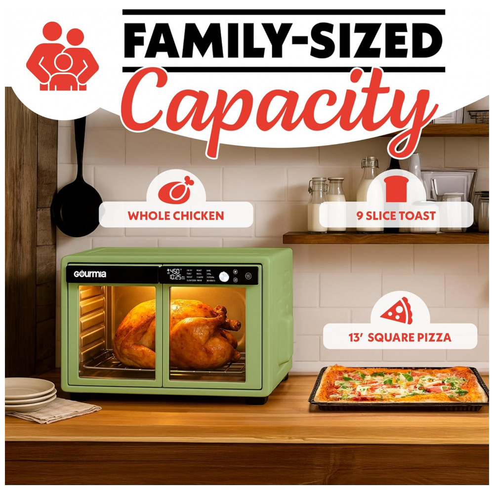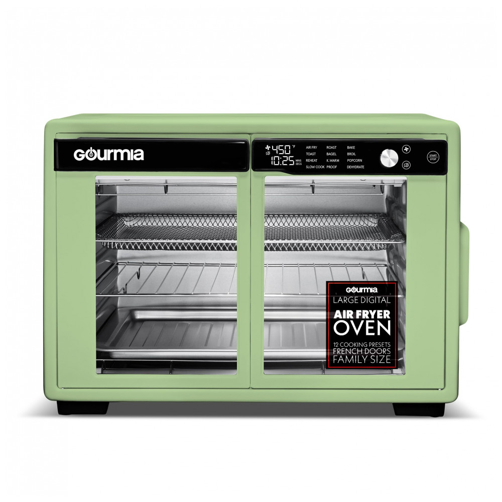 Gourmia Forno Air Fryer French Door 37 Qt Capacidade Grande 12 Funções Display Digital Verde
