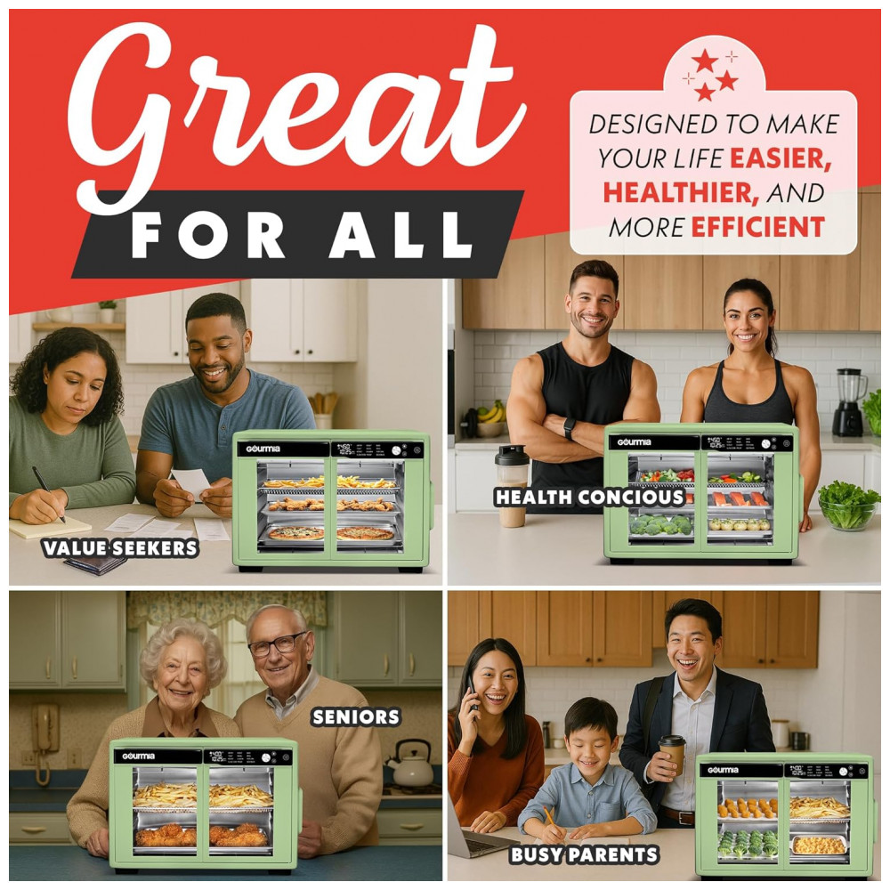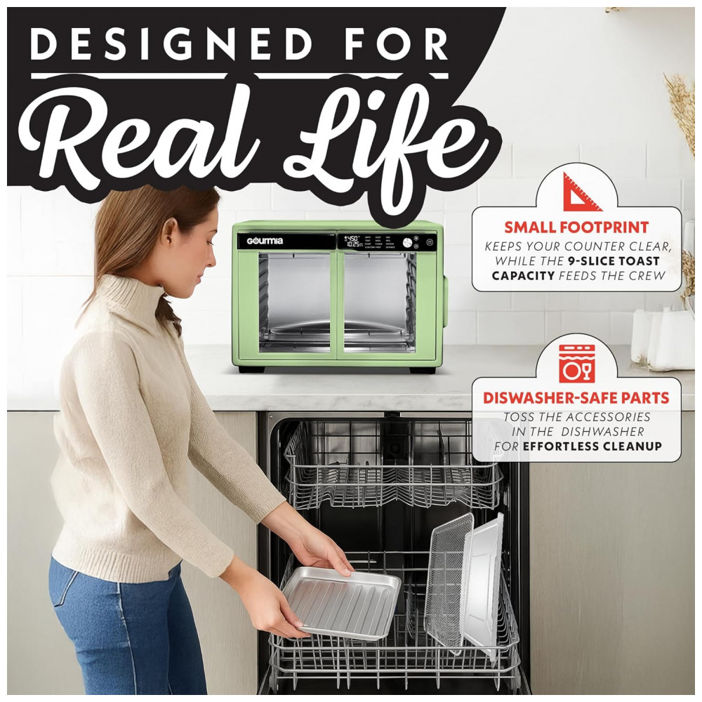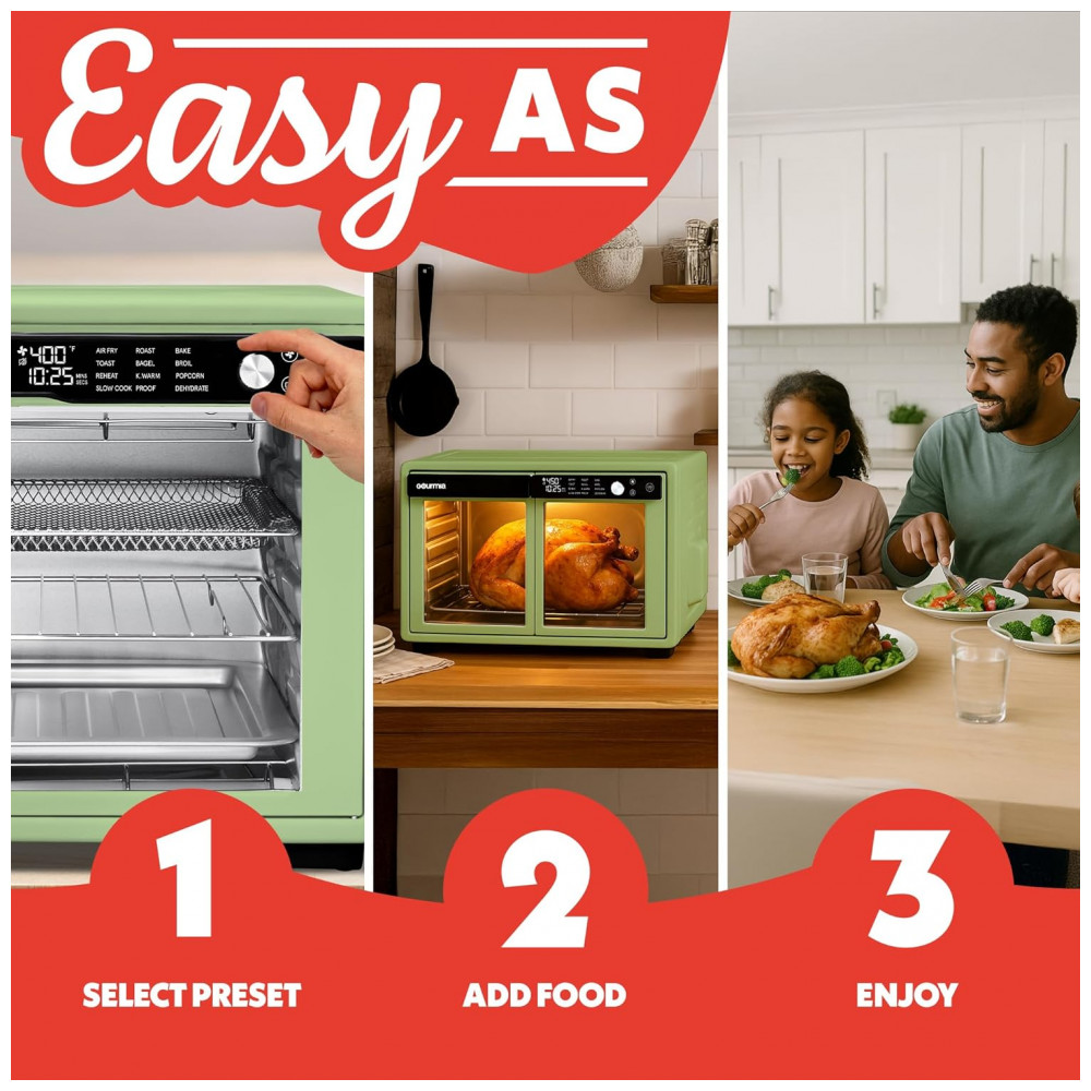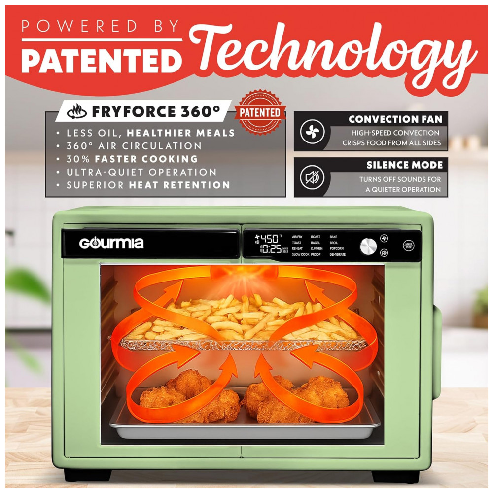 Gourmia Forno Air Fryer French Door 37 Qt Capacidade Grande 12 Funções Display Digital Verde