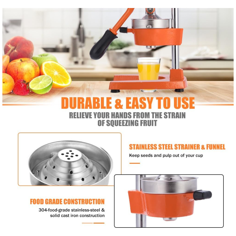 DURÁVEL E DE USAR Feito de aço inoxidável 304 de grau alimentício e construção de ferro fundido sólido para serviços pesados Pesado, substancial, macio e sem esforço tirar quase todas as gotas de suco da fruta quando a usamos 4 cores disponíveis, fica atraente no balcão da sua cozinha