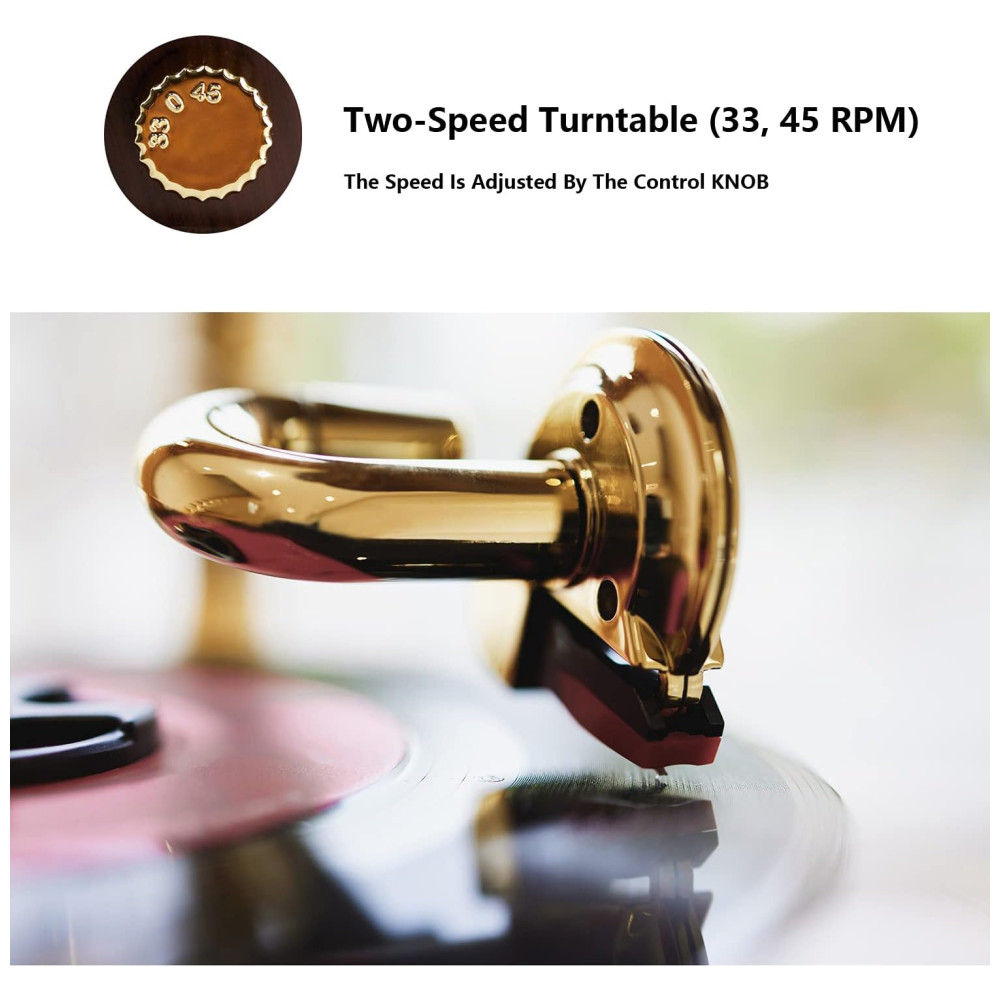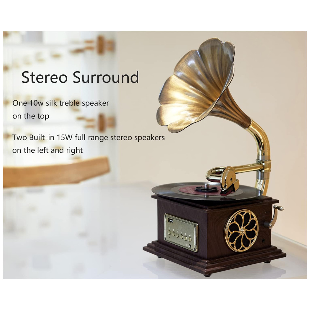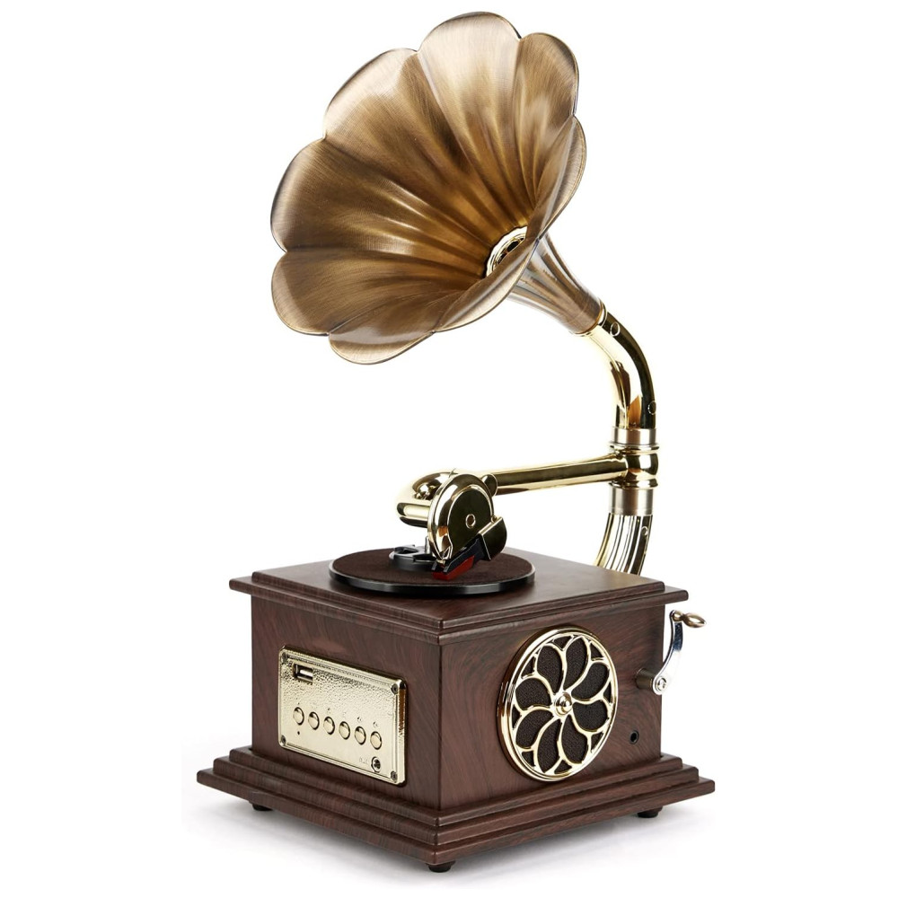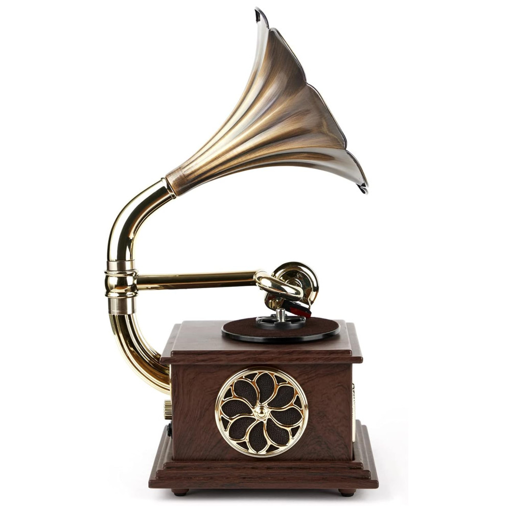 Gramofone Toca Discos Retro com Alto Falante Embutido e Corneta de Cobre 110V Asommet Marrom