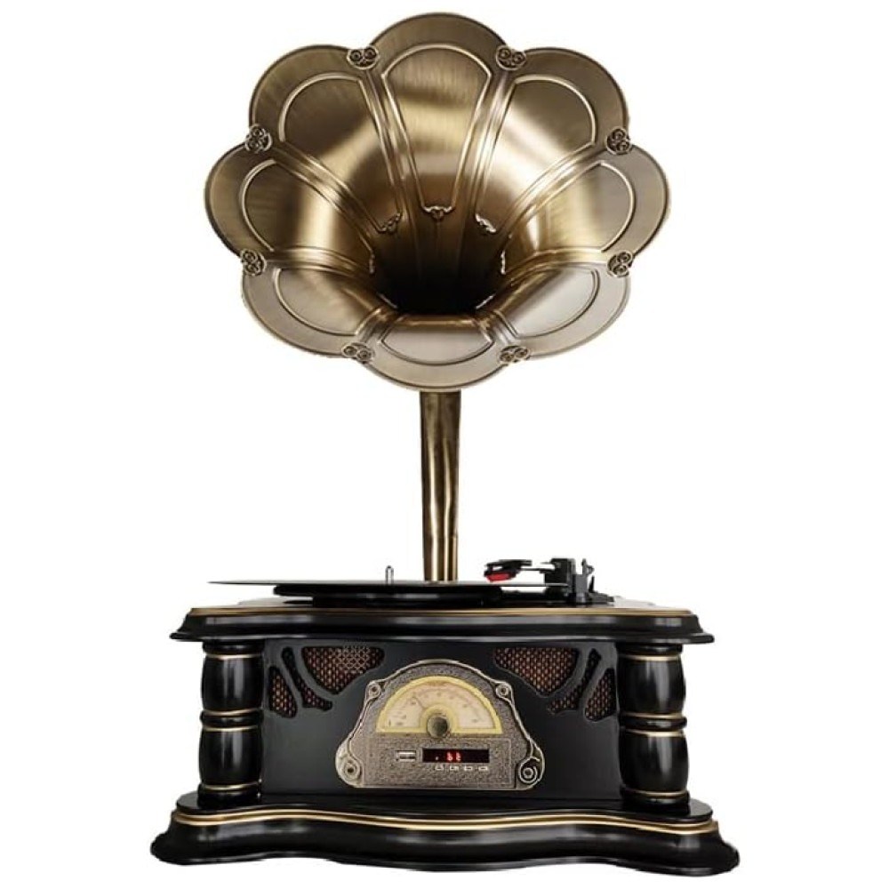Gramofone Toca Discos Retrô com Entrada USB AUX Rádio FM e Bluetooth Artisam Preto