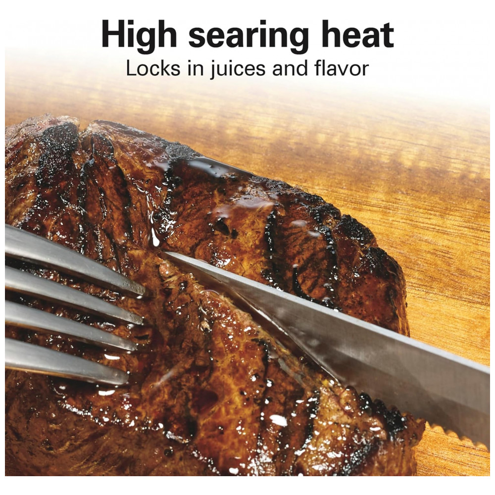 Bloqueia em sucos e sabores grelhe a 450 graus ou use o botão de temperatura ajustável para grelhar em fogo mais baixo para obter ótimos resultados na grelha