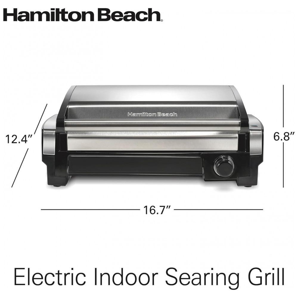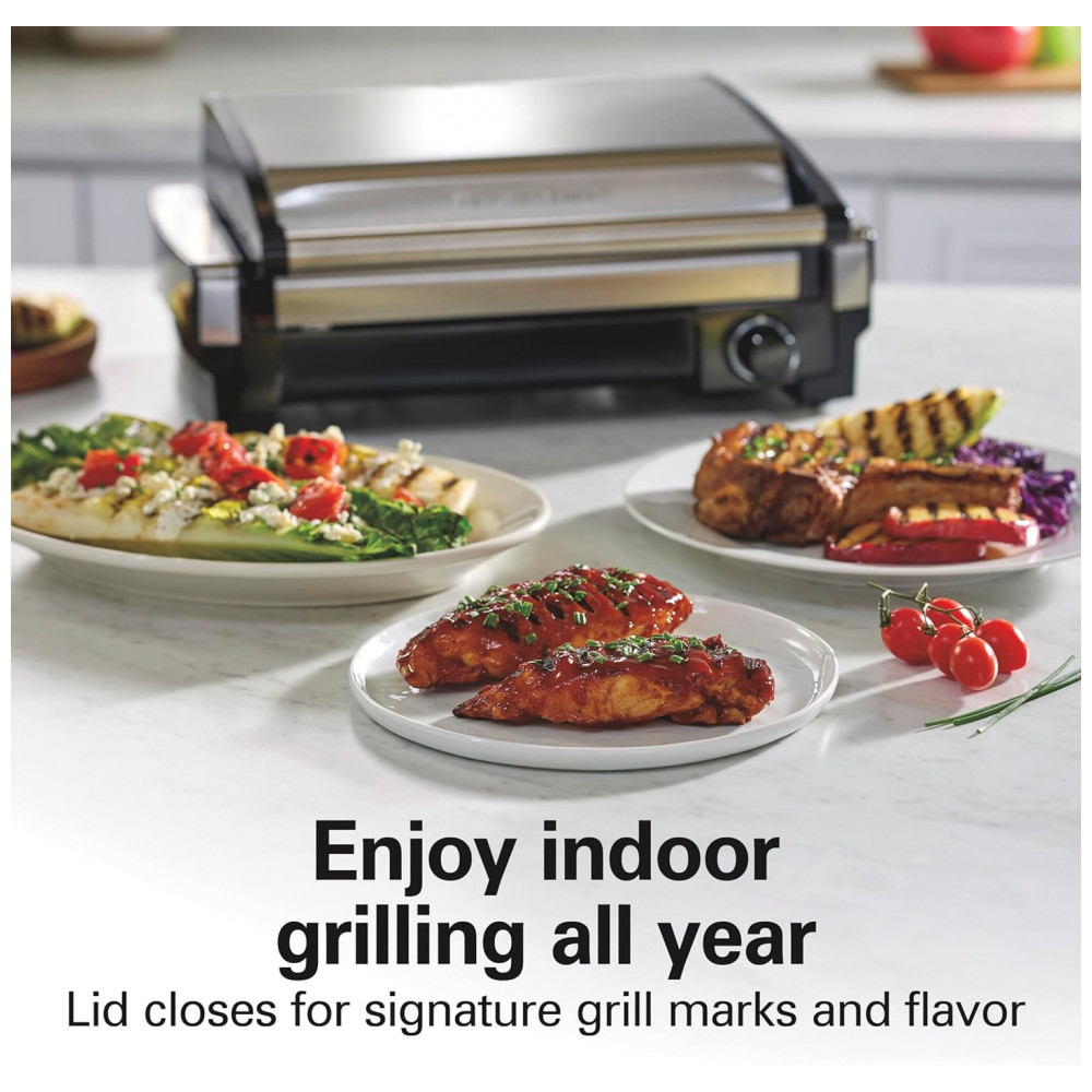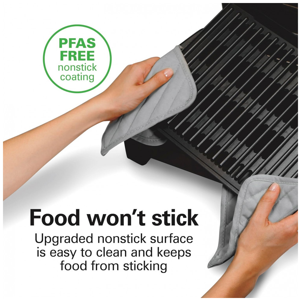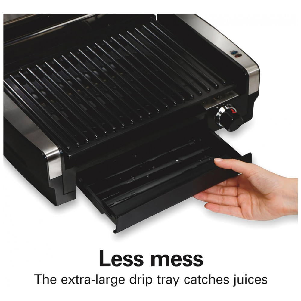 Grelha de queima elétrica interna Placa antiaderente removível fácil de limpar 6 porções bandeja coletora extragrande aço inoxidável HAMILTON BEACH 25360 Preto
