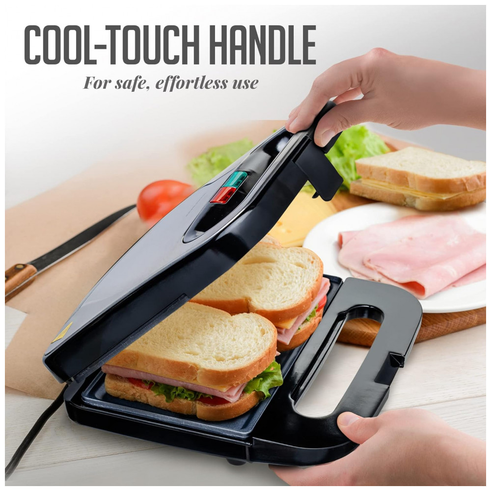 Por que fazer um sanduíche sem graça quando você pode transformá-lo em um delicioso sanduíche estilo panini? Satisfaça seu estômago faminto e saboreie uma iguaria suculenta em questão de minutos. Personalize e sirva refeições saudáveis caseiras para sua família sempre que quiser, onde estiver, com nosso modelo de Grelha Elétrica para Panini OVENTE GP0401B. Com potência de 750 watts e 120 Volts, aquece rapidamente. Seu corpo é feito de aço inoxidável que não entorta facilmente nem enferruja, mesmo sob calor intenso. Da carne e legumes grelhados a um satisfatório sanduíche de queijo grelhado, este pequeno eletrodoméstico de cozinha faz o trabalho rapidamente. Este grill portátil e sanduicheira combinados ocupam pouco espaço na bancada devido ao seu tamanho compacto, tornando o armazenamento conveniente. REFEIÇÕES QUENTES EM MINUTOS Economize tempo de manhã e crie pratos deliciosos estilo restaurante em casa! Ideal para grelhar hambúrgueres, bifes, legumes e preparar omeletes, torradas francesas, sanduíches e muito mais. SIMPLES E EFICIENTE Feito de aço inoxidável resistente ao calor e alimentado por um elemento de aquecimento rápido de 750 watts que proporciona tostagem uniforme. A luz indicadora de energia informa quando o aparelho está ligado, enquanto a luz de pré-aquecimento avisa quando está pronto para cozinhar. ECONOMIZADOR DE ESPAÇO Apresenta um design compacto e leve, sendo a opção perfeita para dormitórios universitários, apartamentos e cozinhas de todos os tamanhos. Esta grelha de contato interna é uma ótima adição à sua bancada e fica em pé para armazenamento, ocupando um espaço mínimo. LIMPEZA SEM ESFORÇO A superfície antiaderente garante a liberação fácil dos alimentos. Basta desligar, deixar esfriar e limpar as placas com uma esponja ou pano em água morna e sabão para remover qualquer resíduo de óleo e comida. SEGURA E ERGONÔMICA A alça de toque frio permite a dissipação do calor para uma operação fácil e segura, enquanto o controle de termostato evita que a comida queime. Possui pés antiderrapantes que garantem estabilidade em superfícies lisas.