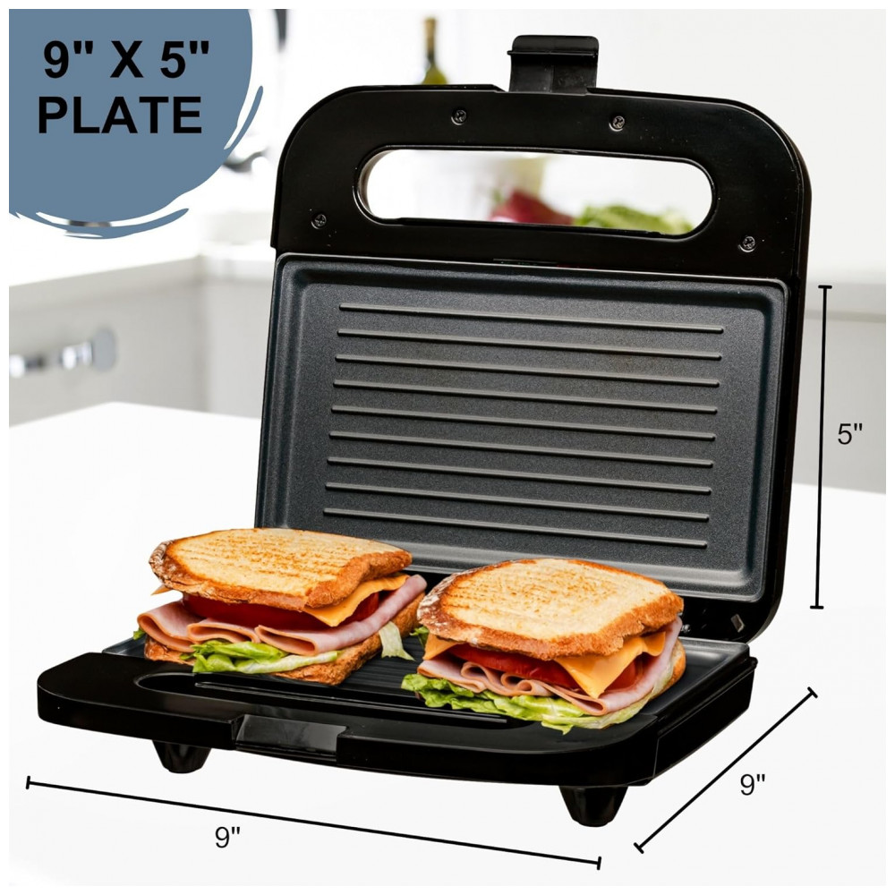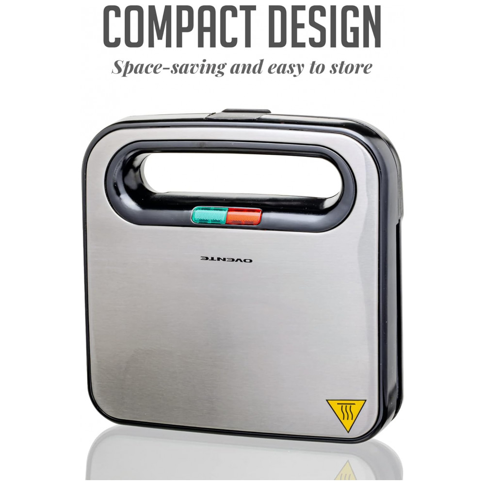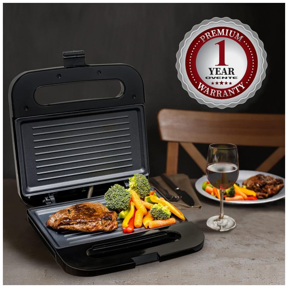 Grelha Elétrica para Panini OVENTE com Placas Antiaderentes Luzes Indicadoras de LED Controle de Termostato Cabo de Toque Frio