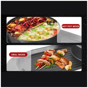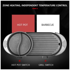 Combinação de grelha de panela quente nossa panela quente para churrasco elétrica 2 em 1 combina os usos versáteis de panela quente e grelhar,permitindo que você desfrute de panela quente e grelhar ao mesmo tempo. É perfeito para aquecer e grelhar sopas, bifes, legumes e mariscos, proporcionando mais diversão ao seu tempo de lazer.