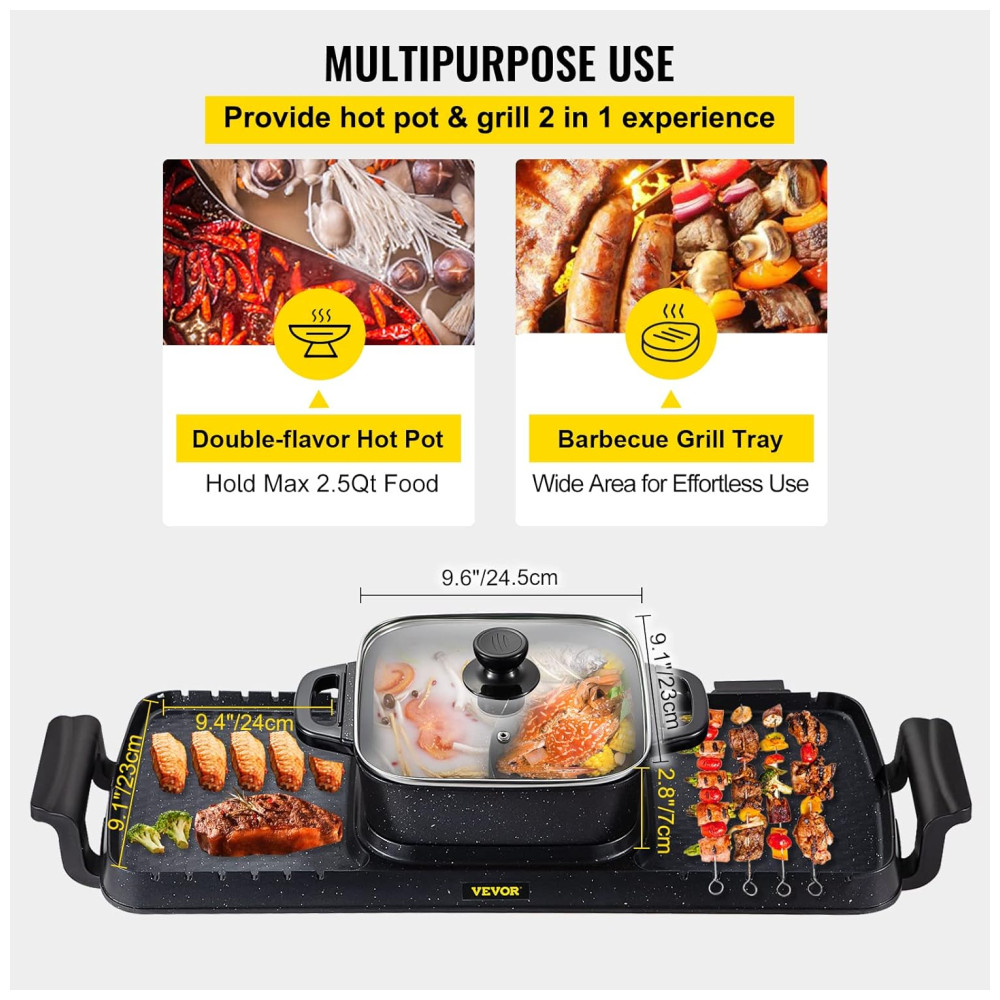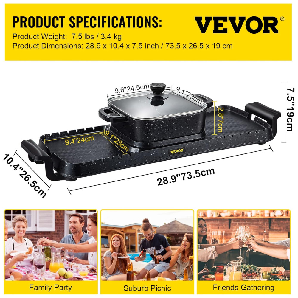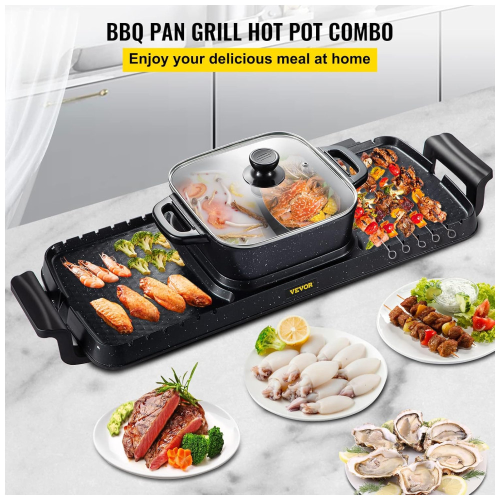 Grill Elétrico e Panela Elétrica Multifuncional 28 Litros com Controle Duplo de Temperatura e Revestimento Antiaderente 2400W 110V VEVOR Preto