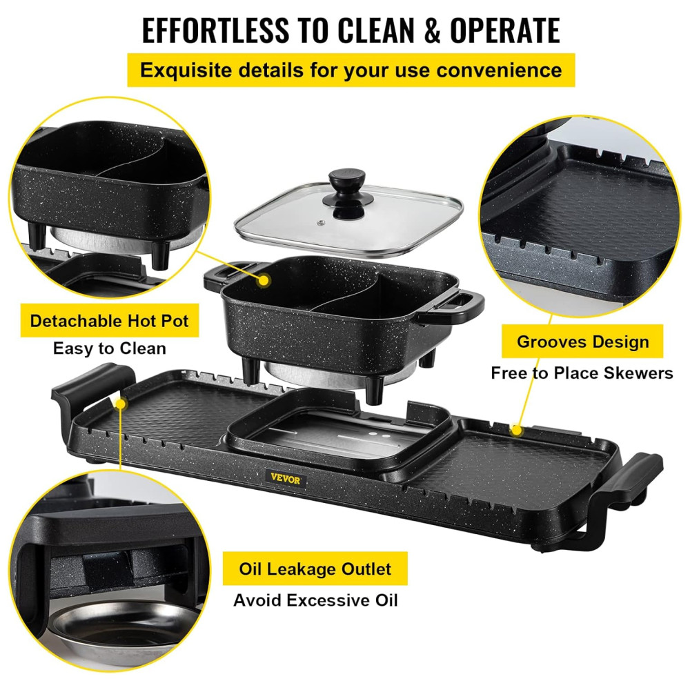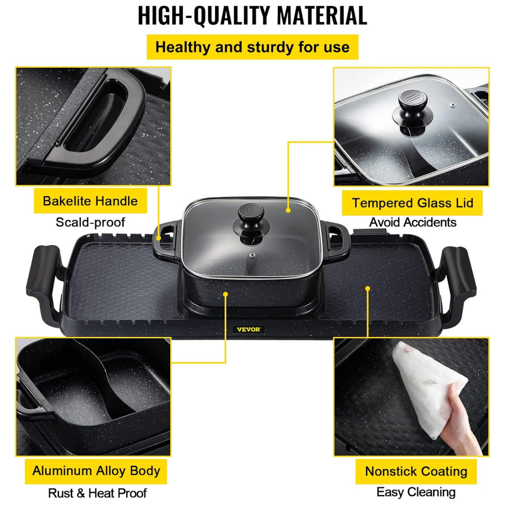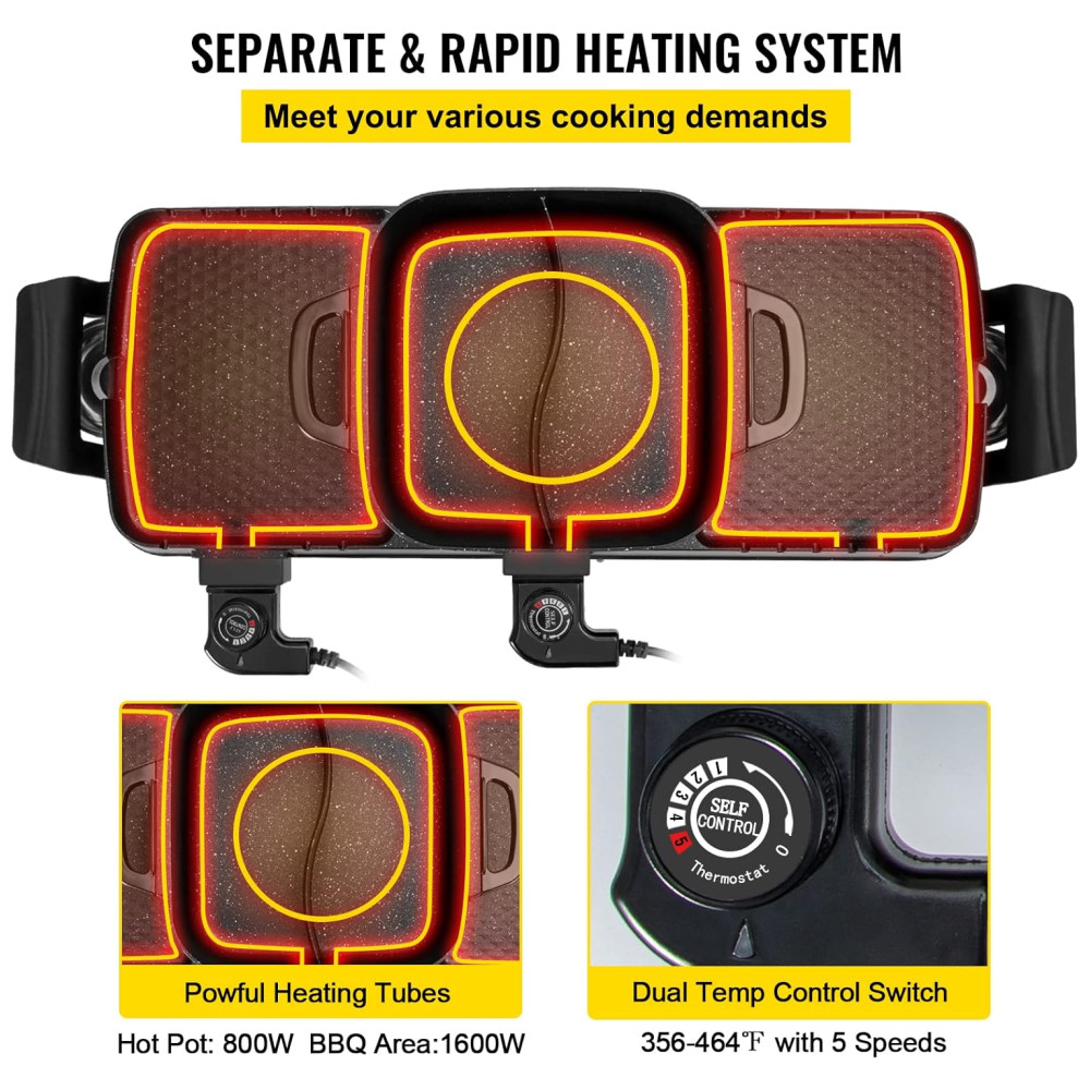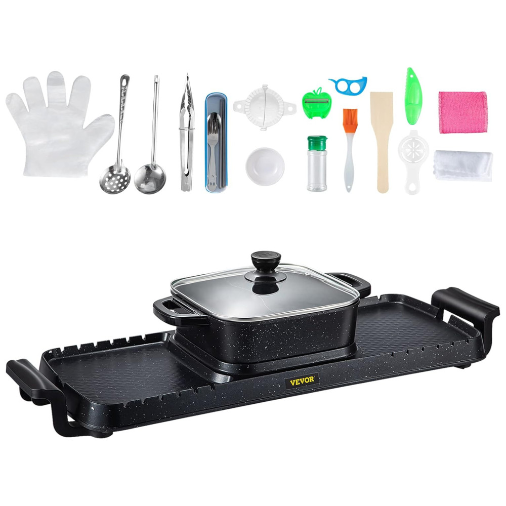 Grill Elétrico e Panela Elétrica Multifuncional 28 Litros com Controle Duplo de Temperatura e Revestimento Antiaderente 2400W 110V VEVOR Preto
