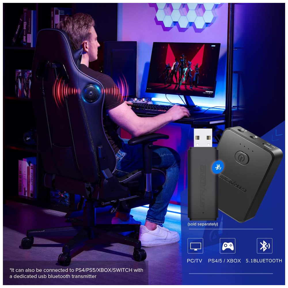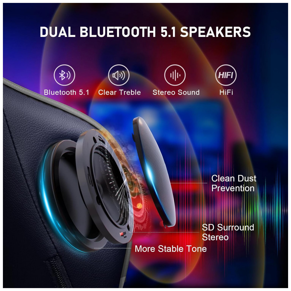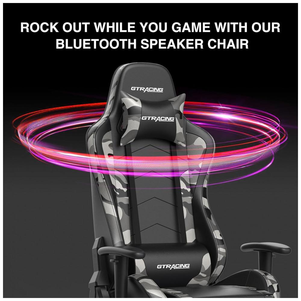 Cadeira para jogos de música projetada com dois alto falantes Bluetooth. o sistema de som surround traz o melhor do seu entretenimento, oferecendo um som estéreo notável e ricamente detalhado com graves sólidos e áudio claro e completo. conecte o ao seu smartphone, tablet ou outros dispositivos habilitados para bluetooth e desfrute de música, jogo para celular ou filme com som emocionante como o de cinema no conforto da sua cadeira de jogos.