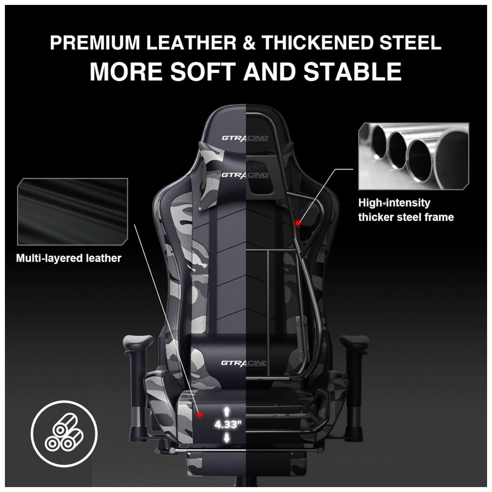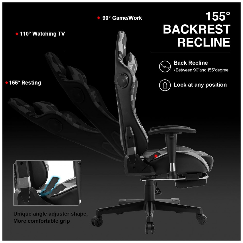 Gtracing Cadeira Gamer Ergonômica Ajustável com Apoio para os Pés Cinza Camuflada