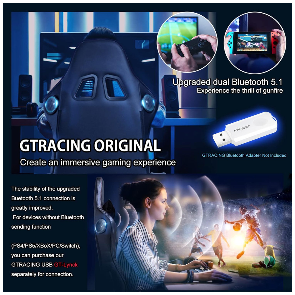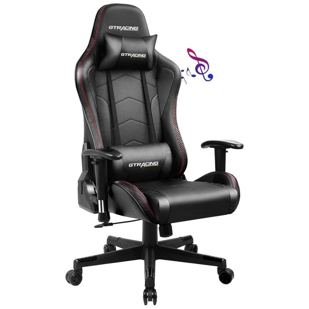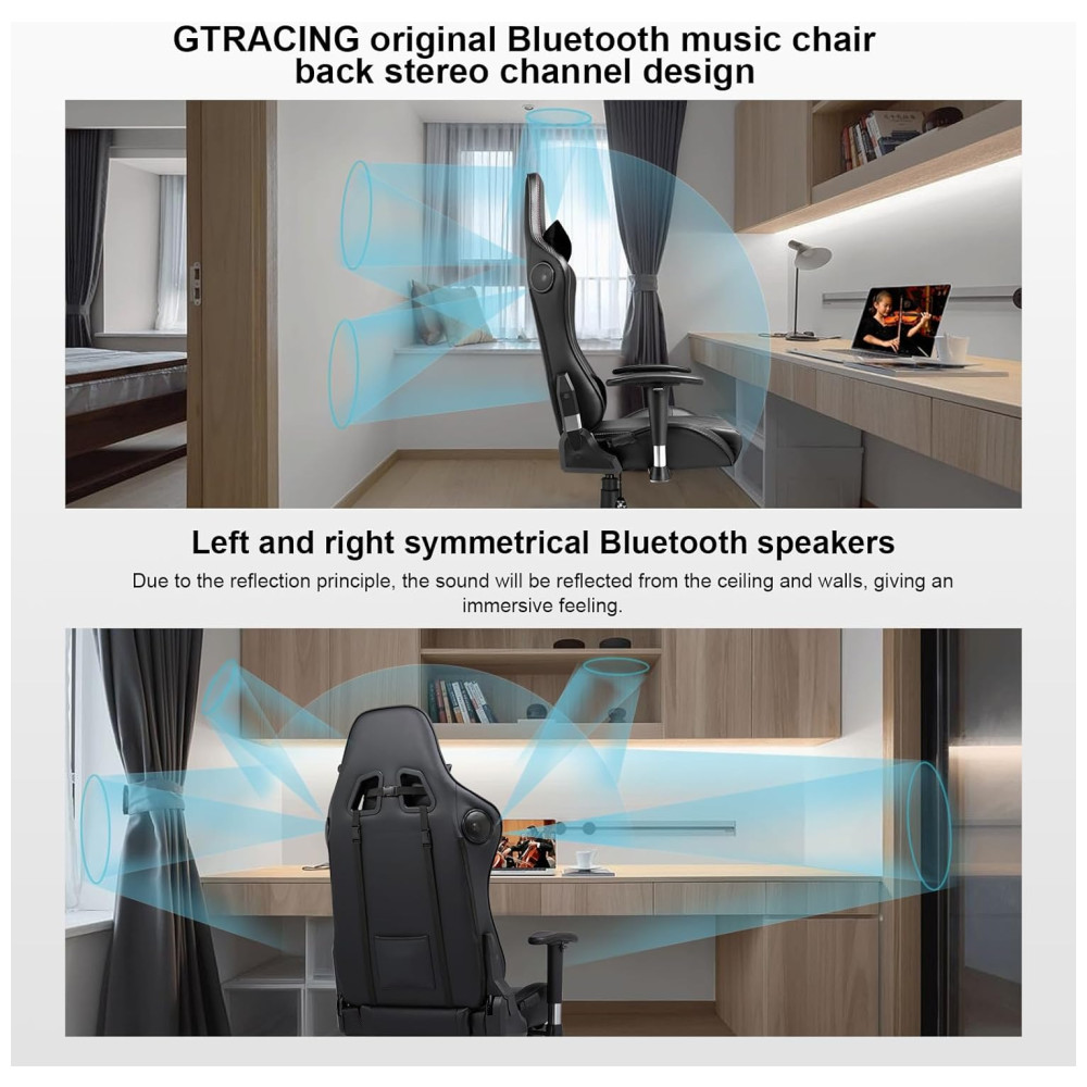 GTRACING GT890M Cadeira de Escritório Gamer Ergonômica com Alto Falantes Bluetooth Preta
