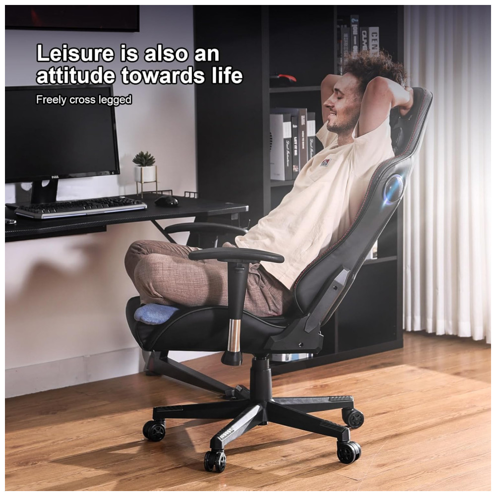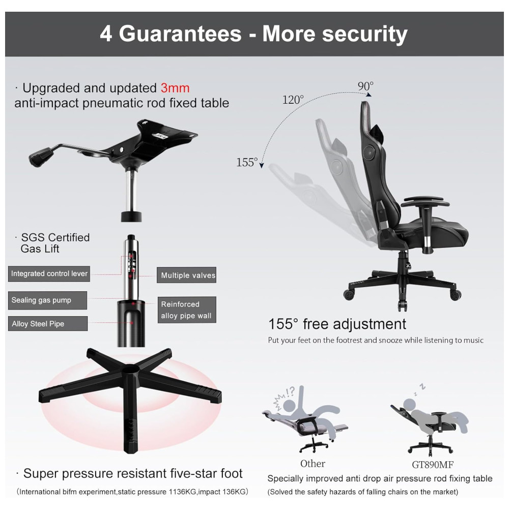 Desfrute de música A cadeira está equipada com dois alto falantes Bluetooth, que podem ser conectados ao seu smartphone, tablet ou outros dispositivos habilitados para Bluetooth por um adaptador Bluetooth não incluído dentro de 5 metros, ele trará um som estéreo notável e ricamente detalhado em graves sólidos, áudio claro e completo. Você pode desfrutar de música por 6 horas quando totalmente carregado.
