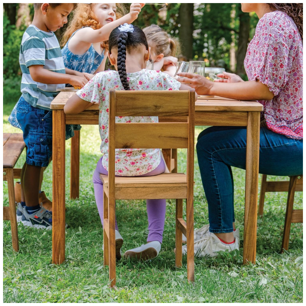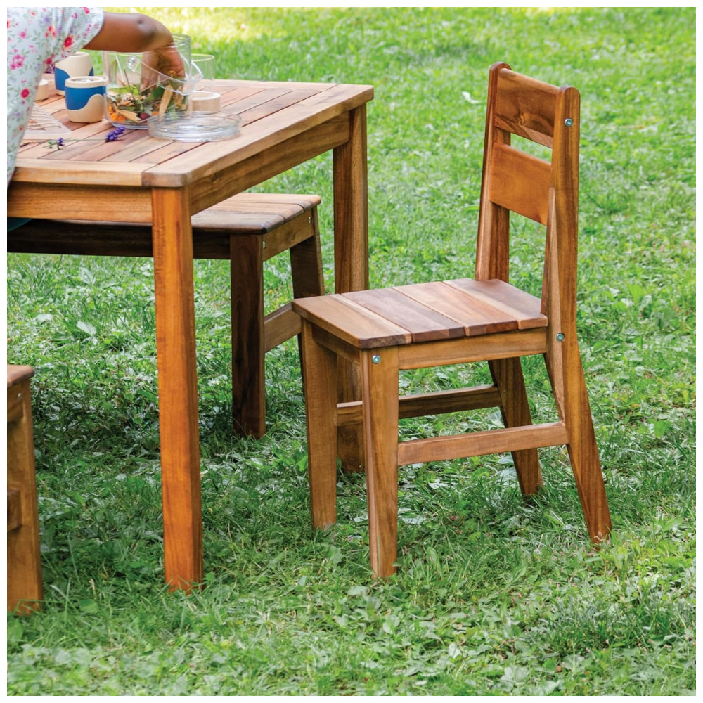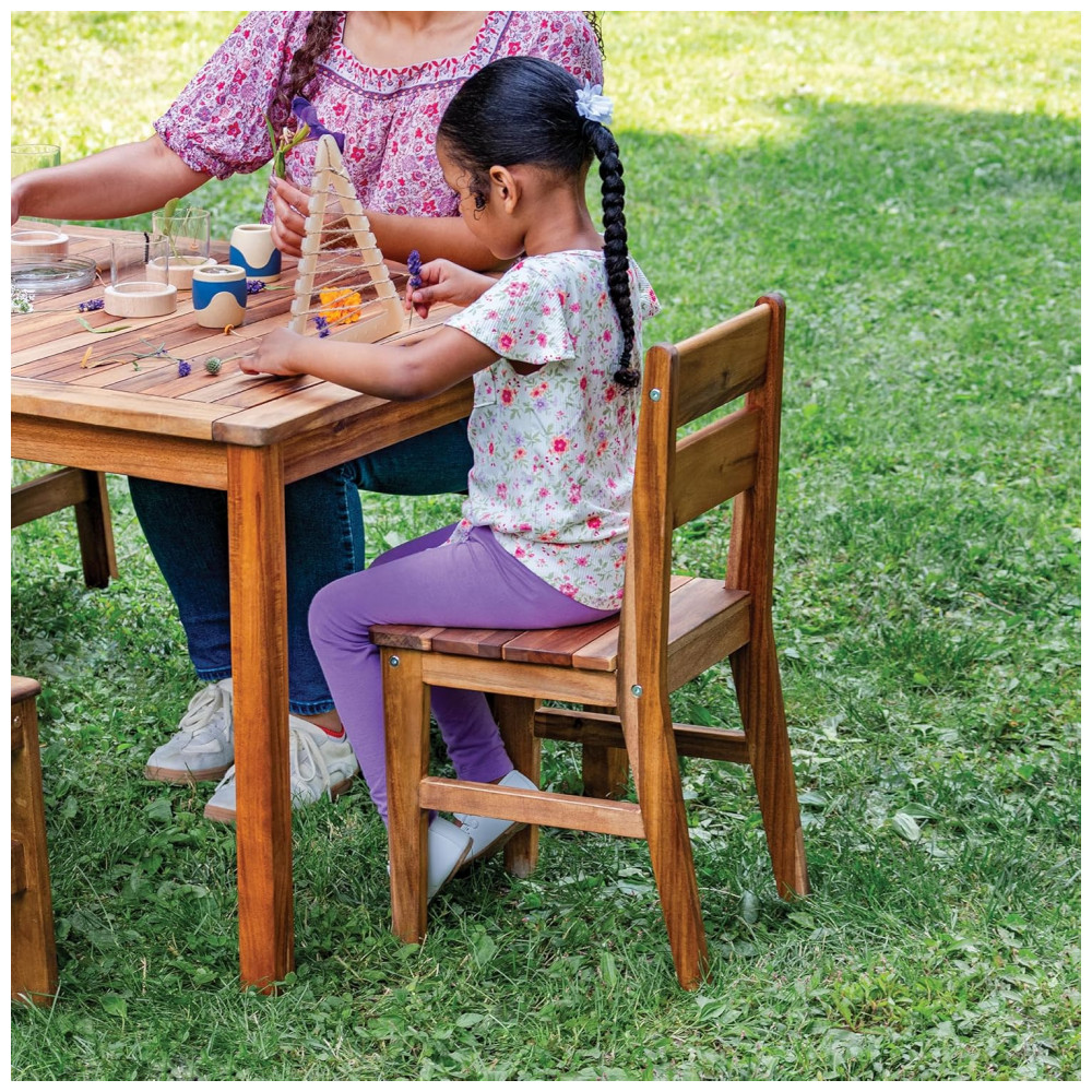 Guidecraft Acadia – Conjunto de 2 Cadeiras Infantis para Área Externa em Madeira Acácia Altura de Assento 36 cm – Móveis Montessorianos para Jardim