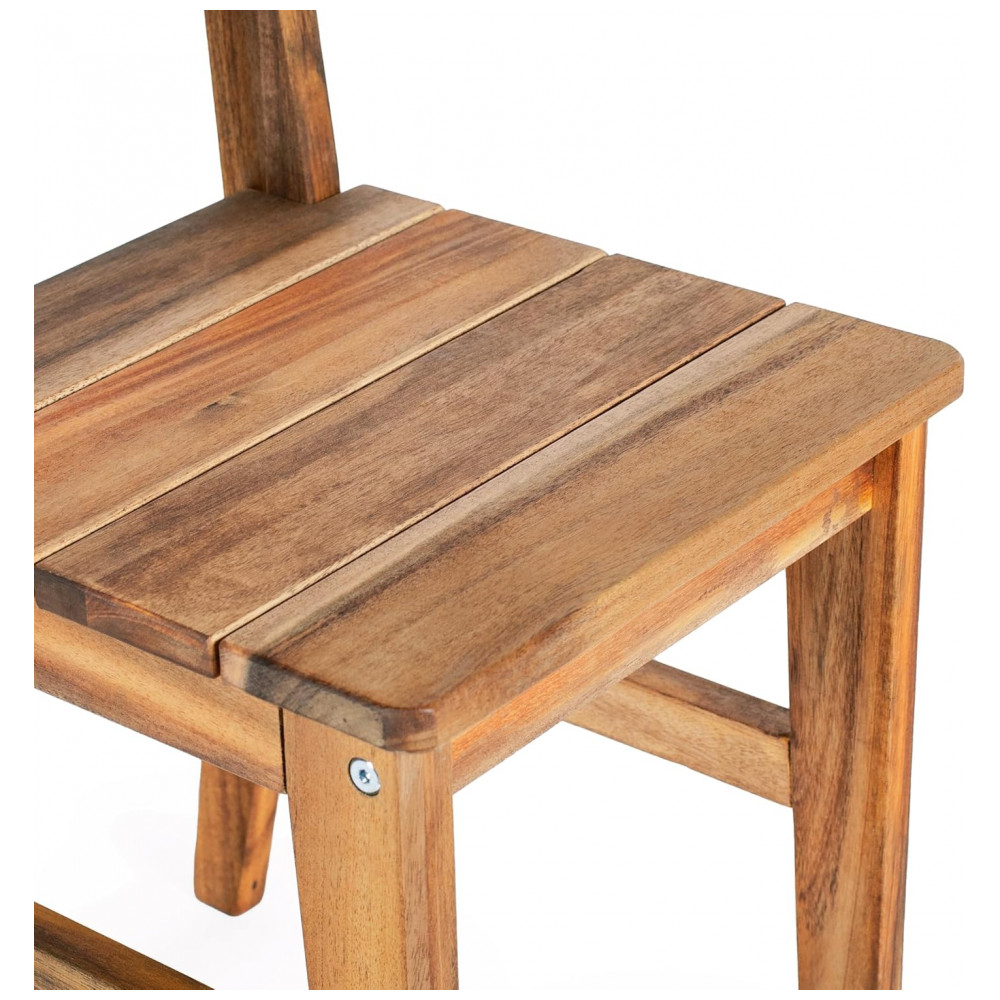 Conteúdo da embalagem: 2 cadeiras em madeira acácia desmontadas, ferragens, ferramentas e instruções de montagem