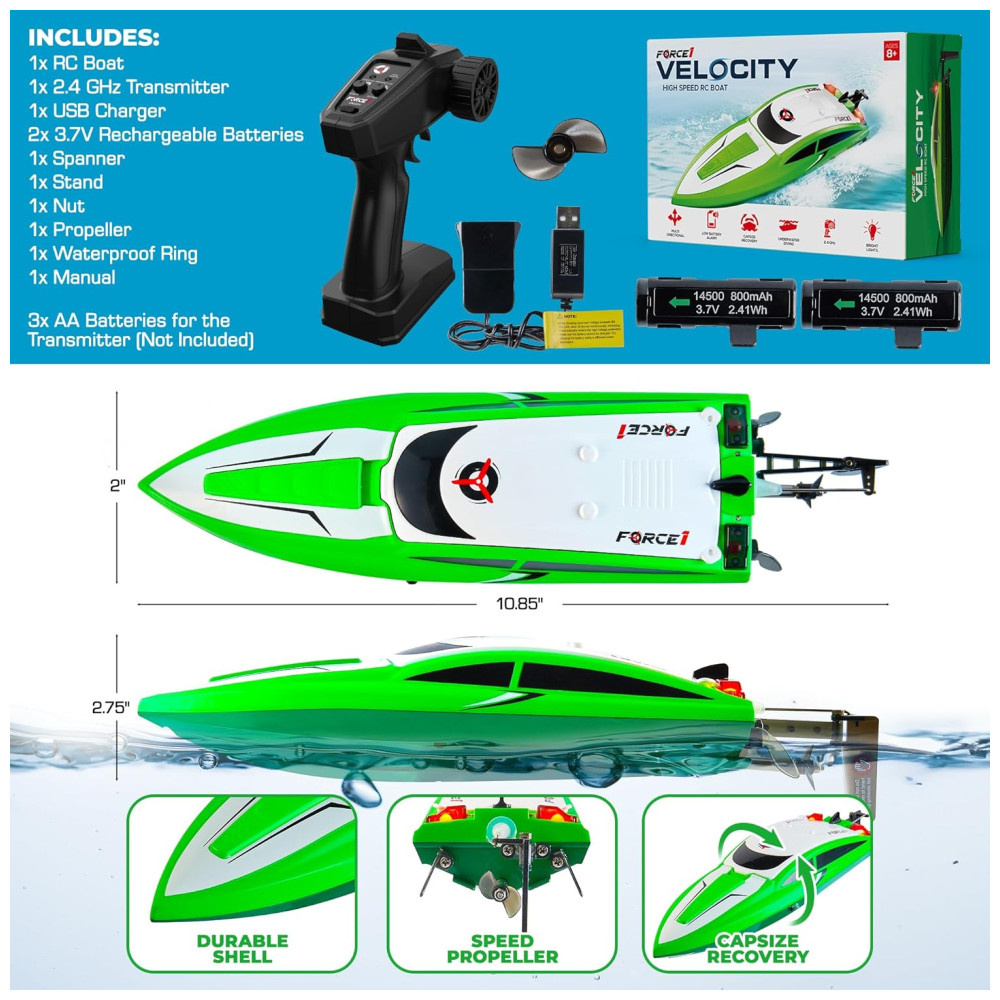 H102 Barco de Controle Remoto para Adultos até 32km por hora Recarregável FORCE1 Verde