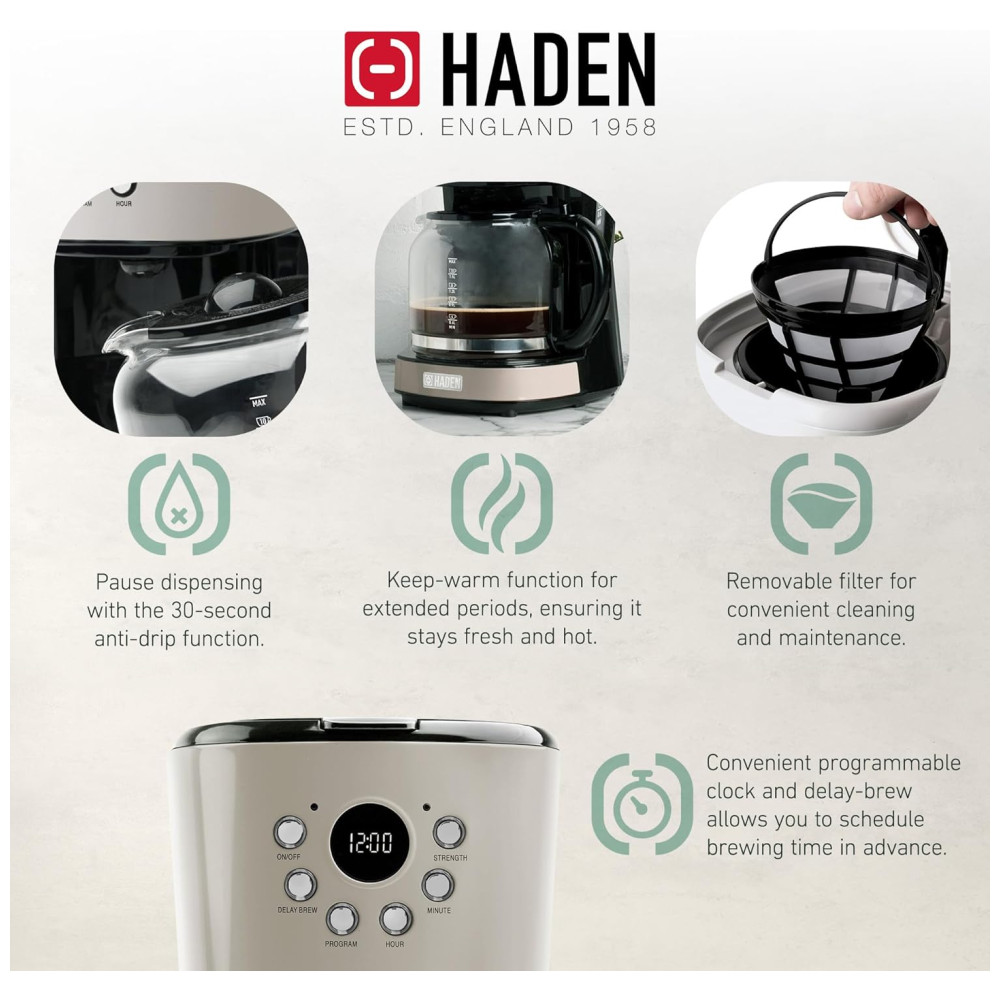 Haden 75028 Cafeteira Proframável Retro Capacidade 1.5L Aço Inox 110V Creme