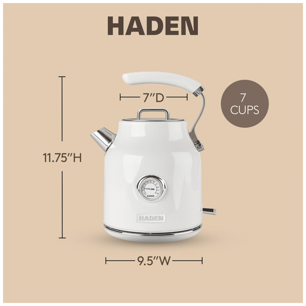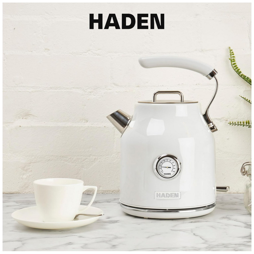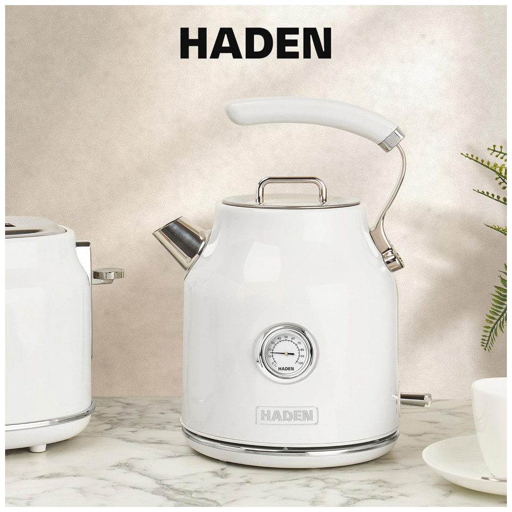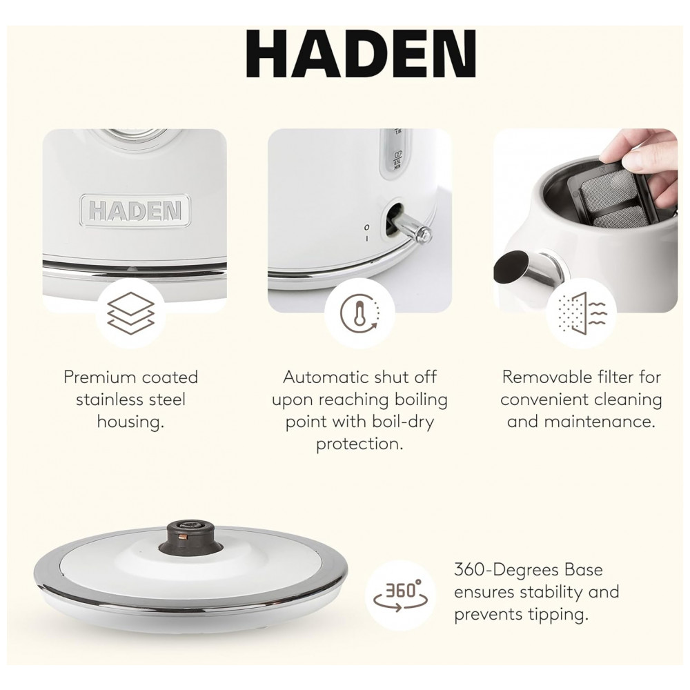 HADEN Chaleira Elétrica Dorset Inox 17L com Base 360° e Desligamento Automático Design Elegante Marfim e Cromo
