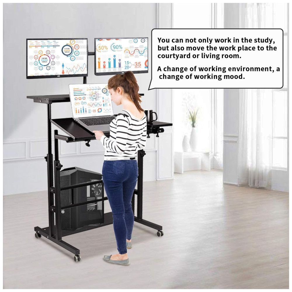 PRÁTICO A estação de trabalho móvel de L x W é grande o estação de tamanho SK PRÁTICO todas as suas coisas suficientes e computadores LA de qualquer. Você pode colocar suprimentos de escritório grandes, como hosts de computador e impressoras no deck inferior. O projeto do deck frontal pode ser instalado para atender sua demanda de escrita ou leitura