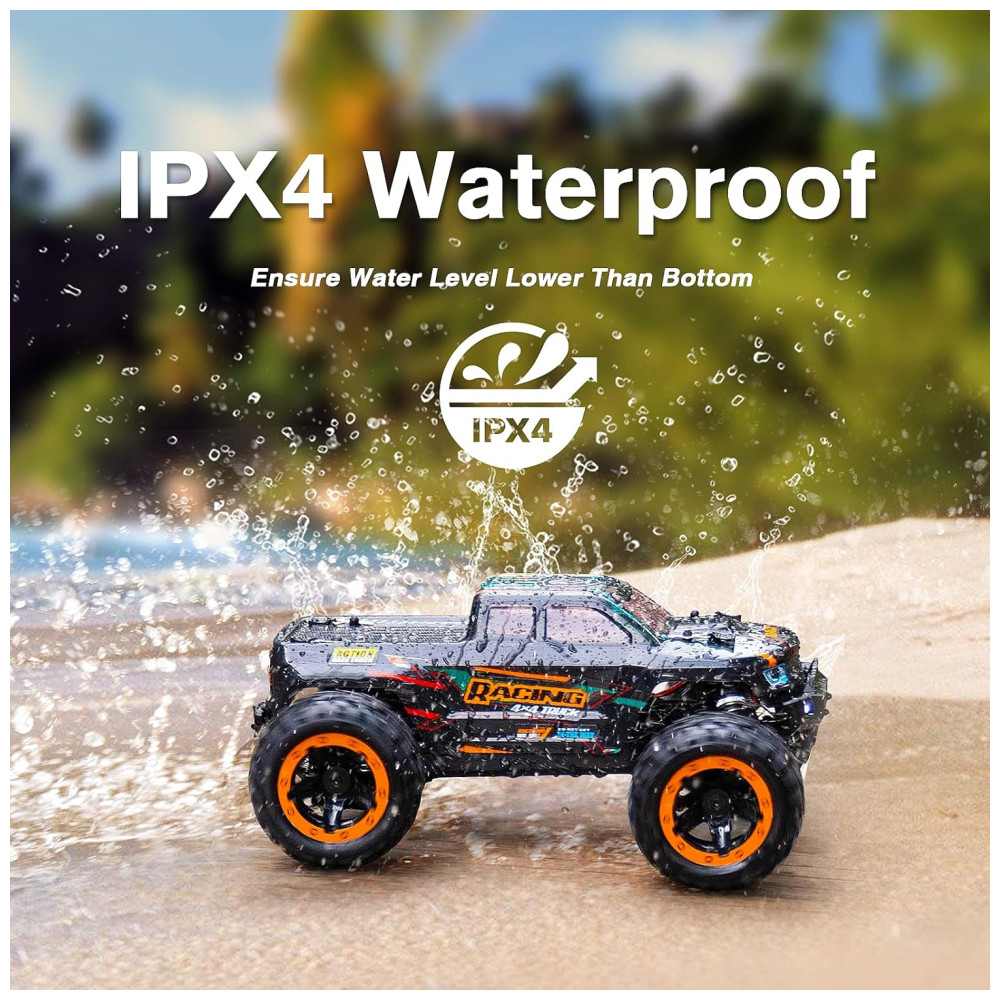 Veículo RC todo o terreno Este carro RC à prova dágua engata um sistema de tração 4WD de eixo central, layout de chassi aberto, pneus protantes de alta aderência e um mecanismo de direção reforçado. Certifique se de que ele pode dirigir rápido em todos os tipos de terreno.