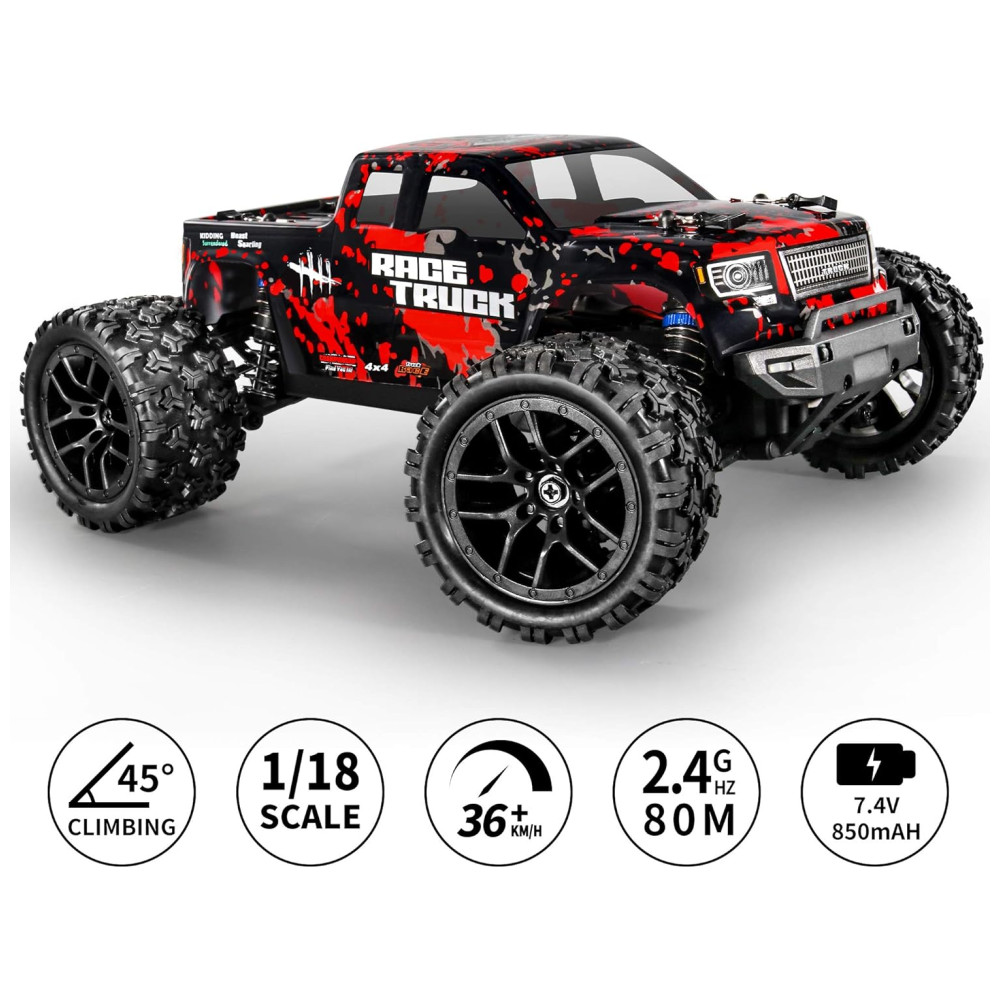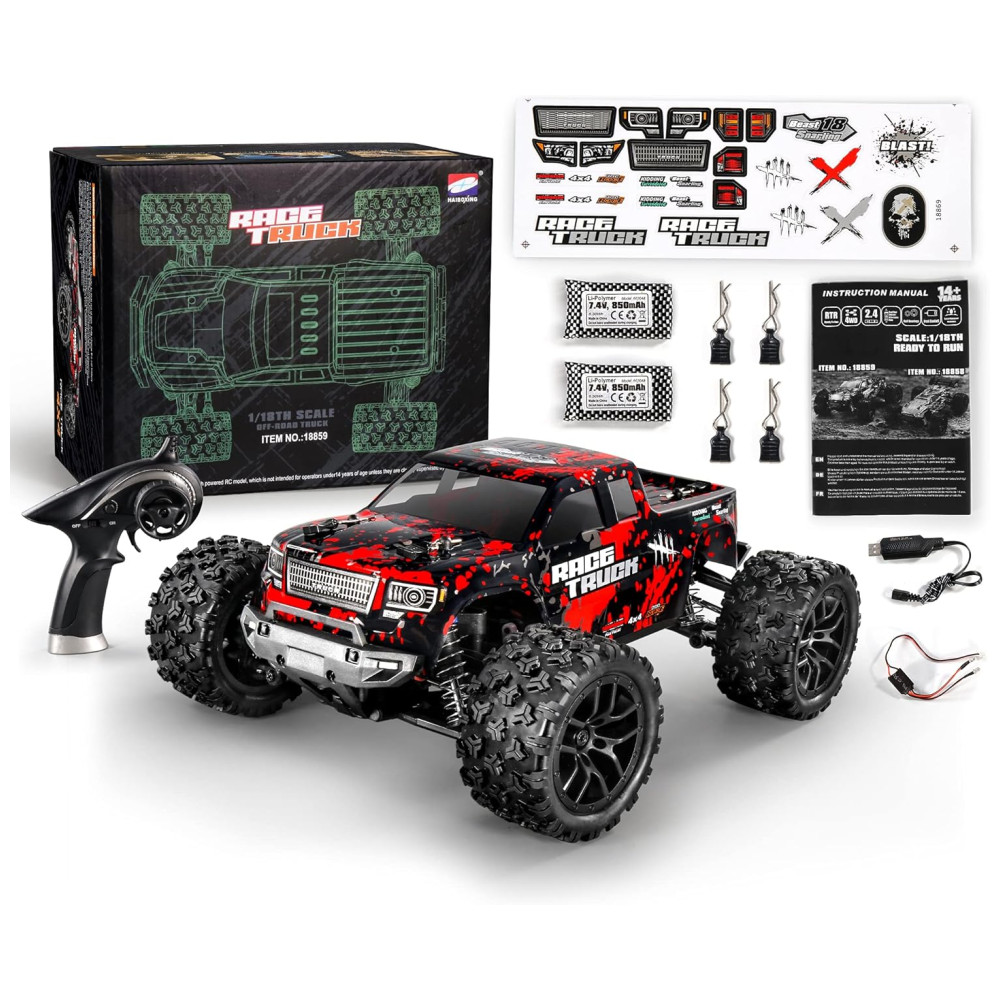 HAIBOXING Carrinho de Controle Remoto Off Road até 36 km por hora Tração 4 x 4 Idade Recomendada 14 HBX JJ7 Vermelho