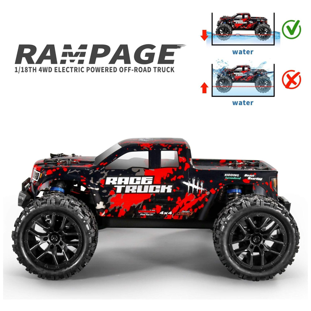 Alimentado com o excelente e rápido motor RC380 escovado em um trem de força incessantemente eficiente, este caminhão 4×4 Rampage atinge uma velocidade máxima de 36 km , h, o que deixa os operadores em um prazer maravilhoso.