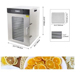 Hakka Máquina Desidratadora de Alimentos com 16 Bandejas Painel Digital de Controle 110V Prata