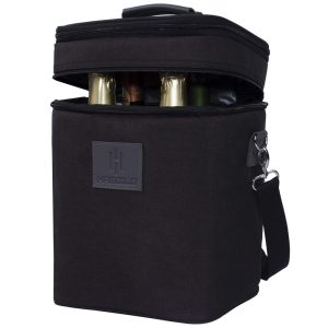 HAMILO Bolsa Térmica Para Transporte de Vinhos até 4 Garrafas com Zíper Expansível Preta