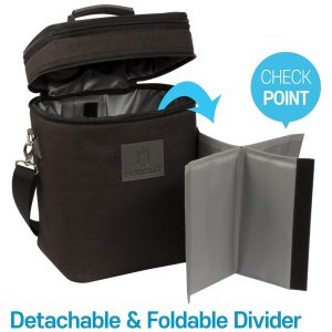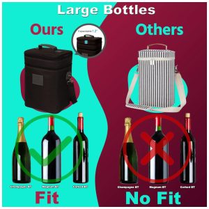 Design espaçoso e inteligente nossa bolsa de viagem portátil para vinho permite que você carregue até 4 garrafas de vinho, champanhe, água, vinho, cerveja e qualquer outra bebida que você tenha em mente. A espuma 5MM EPE e o divisor removível os mantêm s, separados e isolados, tornando os ideais para viagens