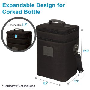 Zíper expansível e design elegante combinamos uma forma espaçosa e funcional com um design moderno e elegante para oferecer a você porta vinhos e bolsas que adicionarão um toque de estilo ao seu visual. Graças ao zíper expansível, você pode zenar garrafas de vinho já abertas com rolhas para transportá las facilmente