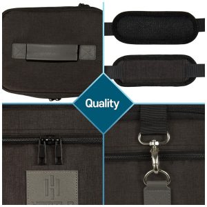 Portátil e fácil de transportar este porta garrafas de vinho possui alças largas acolchoadas que podem ser ajustadas, permitindo que você carregue o confortavelmente durante todo o dia e possui um gancho elástico em saca rolhas, ao mesmo tempo que parece elegante e bonito. Tamanho 22 x 17 x
