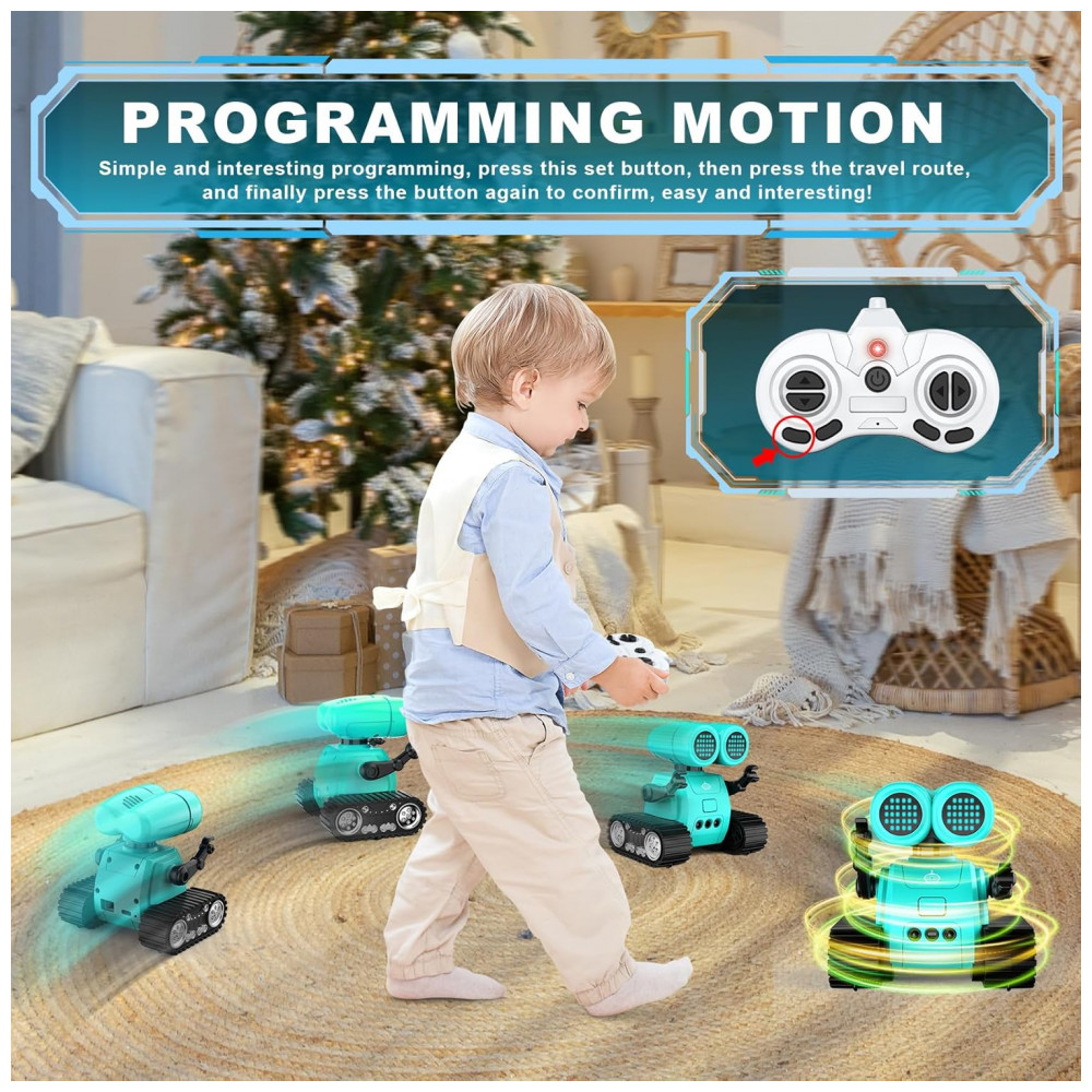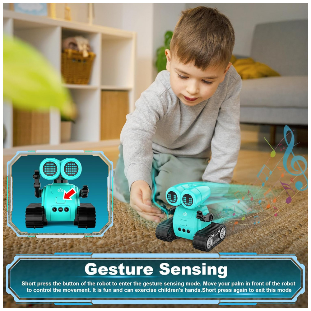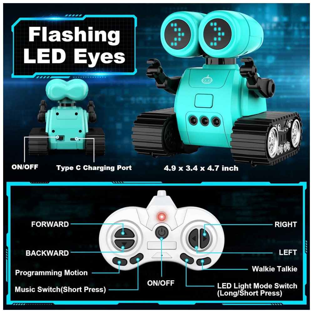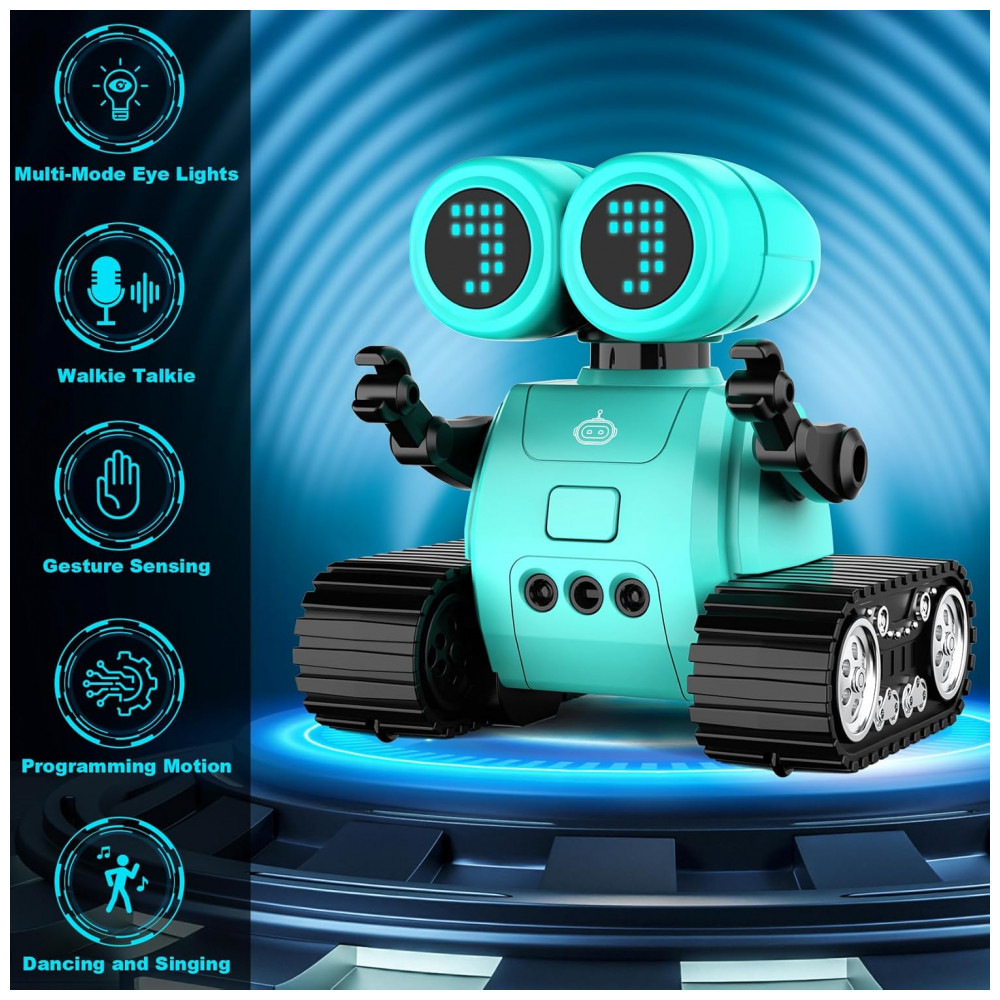 O Hamourd Robot é um brinquedo multifuncional incrível para crianças! Ele possui diversas funções como walkietalkie, sensor de gestos, programação de movimento, dança, canto e luzes de LED multicoloridas nos olhos. Seus olhos acendem ao ligar, enquanto ele fala, canta e se move de forma flexível. Com um design único de robô fofo com olhos grandes e flexíveis, além de um modo walkietalkie que permite interação por gestos e voz, este é o presente perfeito para aniversários e festas. Este robô é divertido, educativo e encantador, diferente de tudo que você já viu!