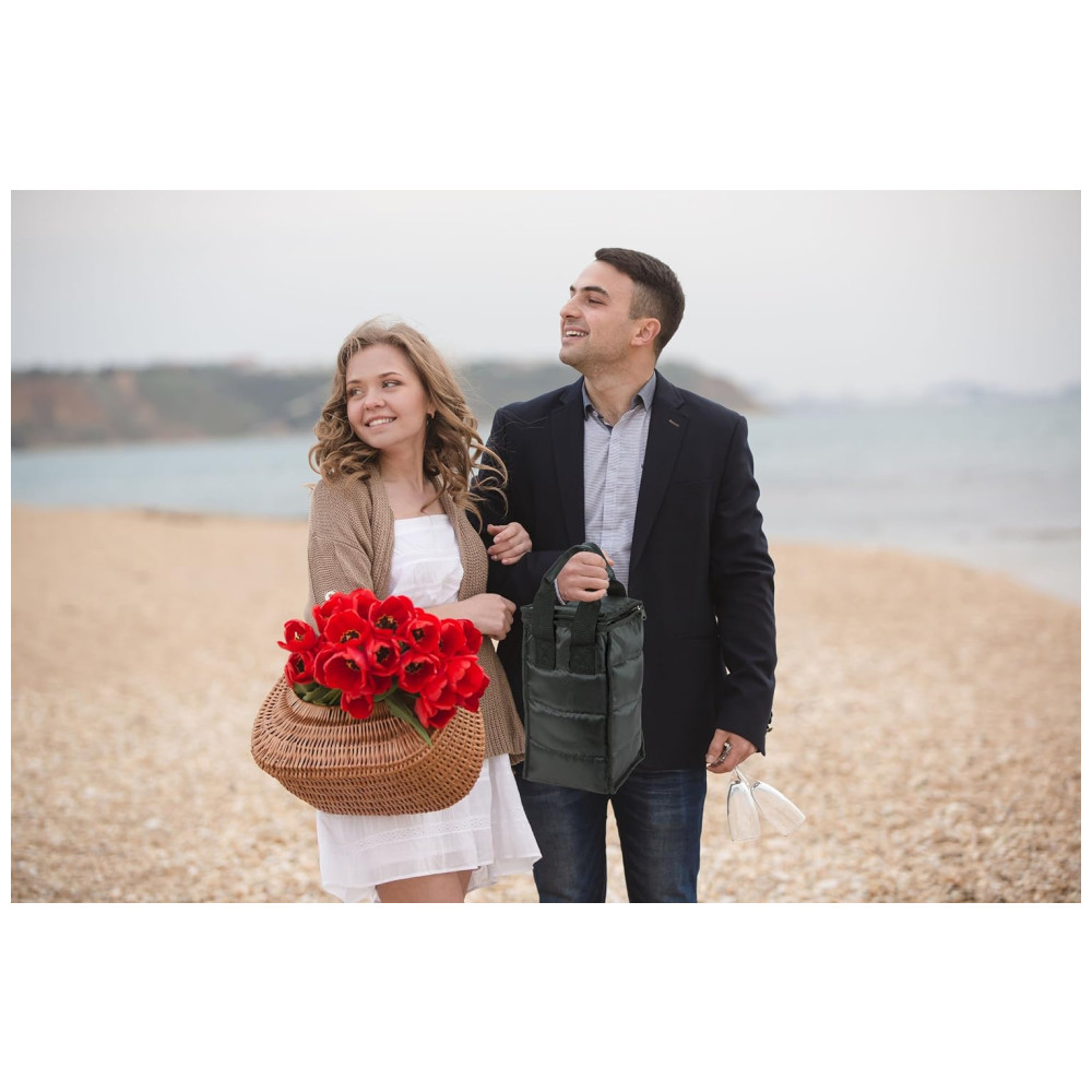 A atraente transportadora de vinho a torna ótima para uso em viagens, piqueniques, dias de praia e muito mais.