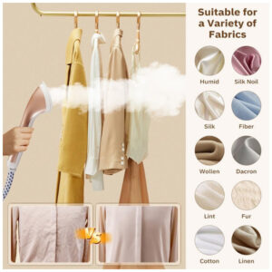 O vaporizador de roupas eficiente de 1800W da HAPAIS combina o poder de um ferro com a praticidade de um vaporizador, com vapor potente de 1800W que aquece em apenas 30 segundos. O vapor de até 120°C penetra profundamente e amacia as fibras, facilitando não apenas a remoção de rugas, mas também refrescando e desodorizando tecidos. Com um tanque de água translúcido removível de 2 litros, proporciona até 1 hora de vapor contínuo. O design de duplo suporte permite passar a ferro de forma plana ou pendurada, com ajuste de altura para maior conforto. Com um design de bocal inteligente de 10 furos ultraleve, oferece resultados precisos e delicados. Possui 10 modos de passar a ferro ajustáveis, ideais para diversos tipos de tecidos como seda, algodão e linho, além de itens domésticos como lençóis e cortinas. O vaporizador de roupas é uma forma natural de refrescar e remover rugas para resultados perfeitos.