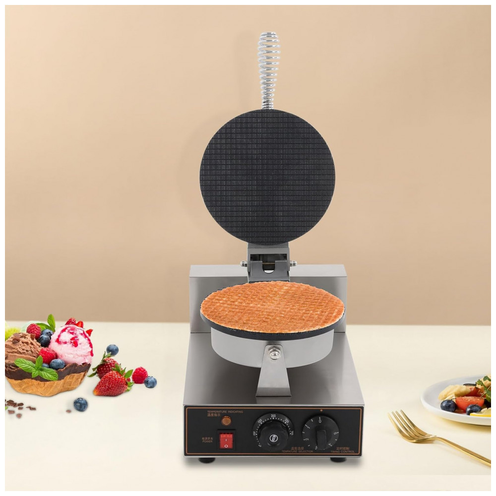 HAPPCUCOE Máquina Comercial para Casquinhas de Sorvete 1200W em Aço Inoxidável com Controle de Temperatura e Tempo