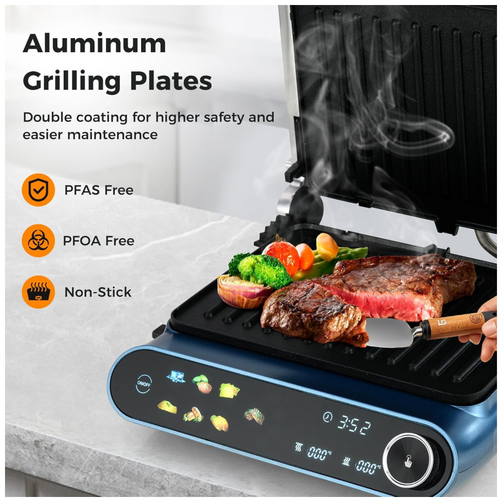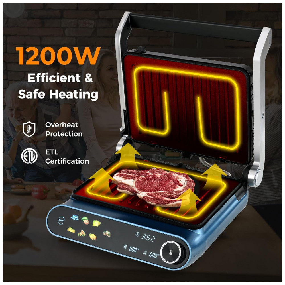 Happygrill 3 em 1 Panini Press Grill Elétrico Sanduicheira 1200W Placa Dupla Antiaderente Display LED Controle de Temperatura Independente