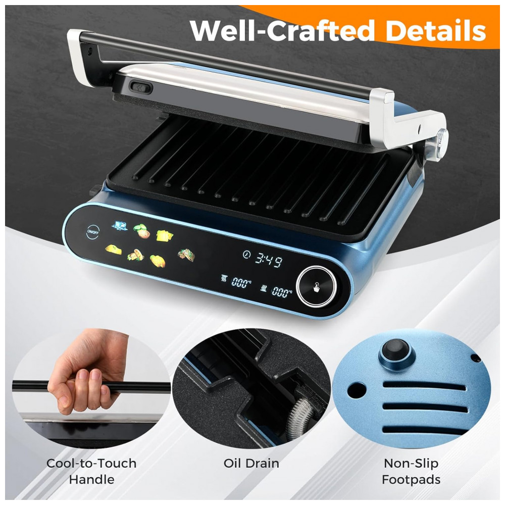 Transforme sua cozinha em um paraíso culinário versátil com esta sanduicheira elétrica. Com 1200W de potência para aquecimento rápido e uniforme e vários modos de cozimento, esse grill é perfeito para tudo, desde torradas pela manhã até um bife perfeitamente selado. As placas de alumínio antiaderentes e a bandeja de gotejamento removível são seguras para lava-louças, facilitando a manutenção. Explore a facilidade de criar uma variedade de pratos com este eletrodoméstico funcional, com detalhes bem trabalhados que tornam a hora da refeição agradável e sem esforço.