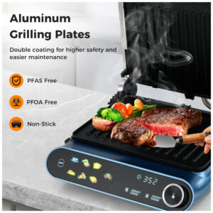 Transforme sua cozinha em um paraíso culinário versátil com esta sanduicheira elétrica. Com 1200W de potência para aquecimento rápido e uniforme e vários modos de cozimento, esse grill é perfeito para tudo, desde torradas pela manhã até um bife perfeitamente selado. As placas de alumínio antiaderentes e a bandeja de gotejamento removível são seguras para lava-louças, facilitando a manutenção. Explore a facilidade de criar uma variedade de pratos com este eletrodoméstico funcional, com detalhes bem trabalhados que tornam a hora da refeição agradável e sem esforço.