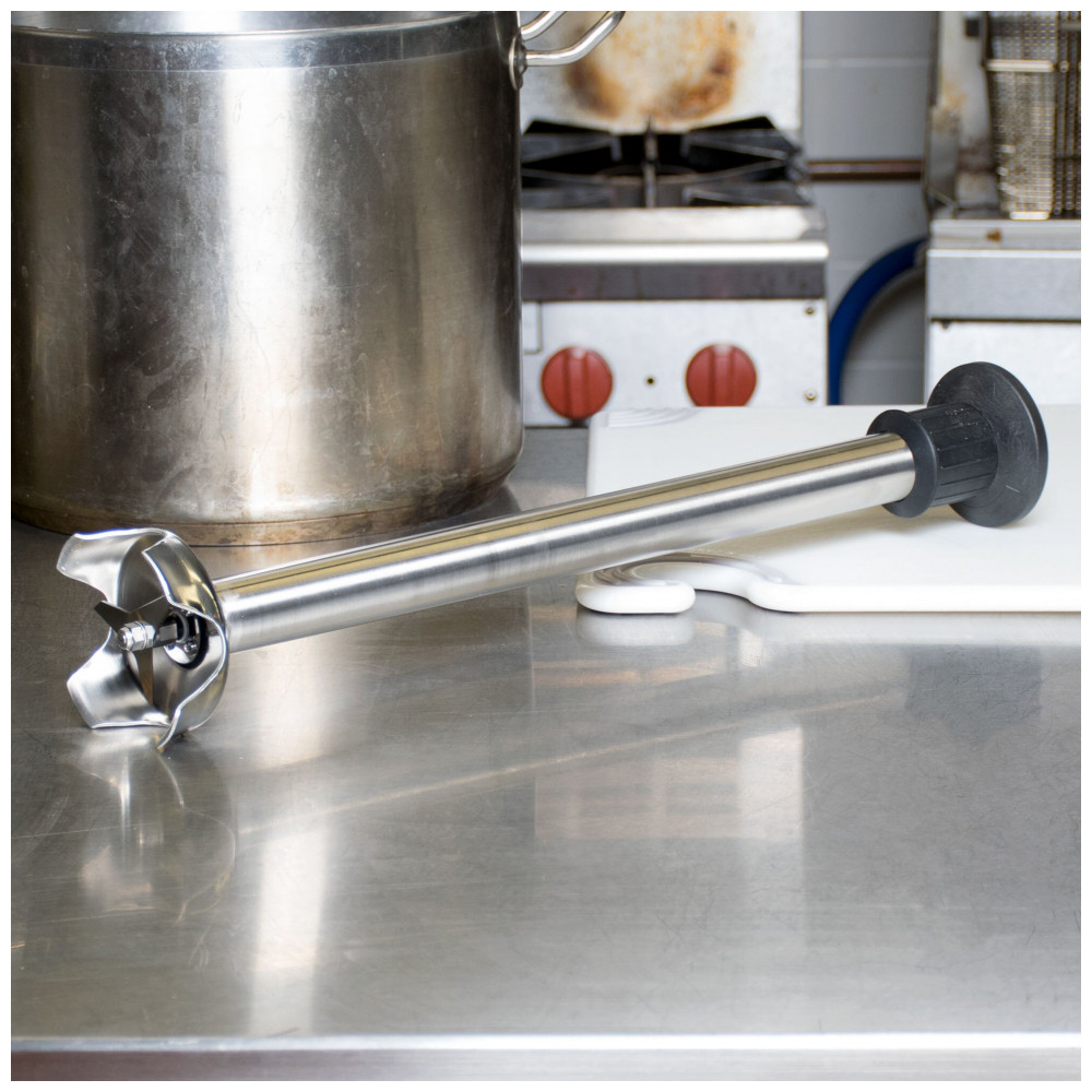 A haste Waring WSB65ST de 18 polegadas (45,7 cm) é um componente removível projetado para liquidificadores de imersão pesados da linha Big Stix, como modelos WSB65 e equivalentes. Essa extensão de aço inoxidável permite mistura em profundidade em caldeirões ou panelas de até 38 litros, ideal para sopas, molhos e purês em cozinhas industriais. O encaixe rápido facilita a troca com outros acessórios da série.