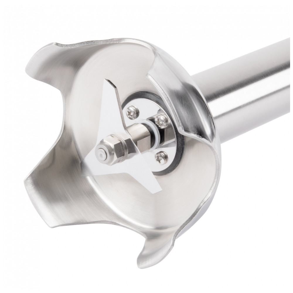 Construída em aço inoxidável 300 série, resiste à corrosão por ácidos alimentares e suporta lavagem em máquina de lavar louça. Compatível com motores Big Stix de 750W e velocidades variáveis até 18.000 RPM. O diâmetro reduzido otimiza o fluxo sem salpicos excessivos.