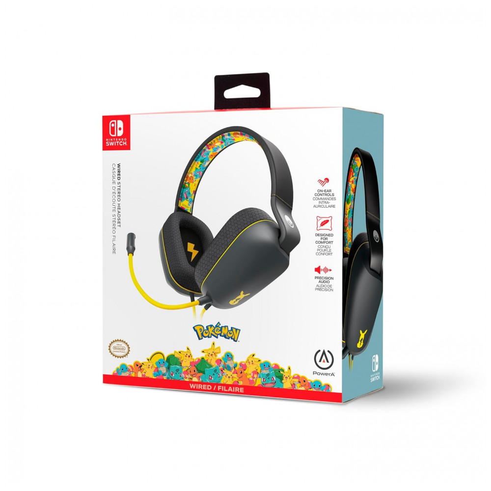 Headset gamer PowerA estéreo com fio Nintendo Switch Pokémon Kanto Friends drivers 50 mm over‑ear conector 35 mm microfone destacável