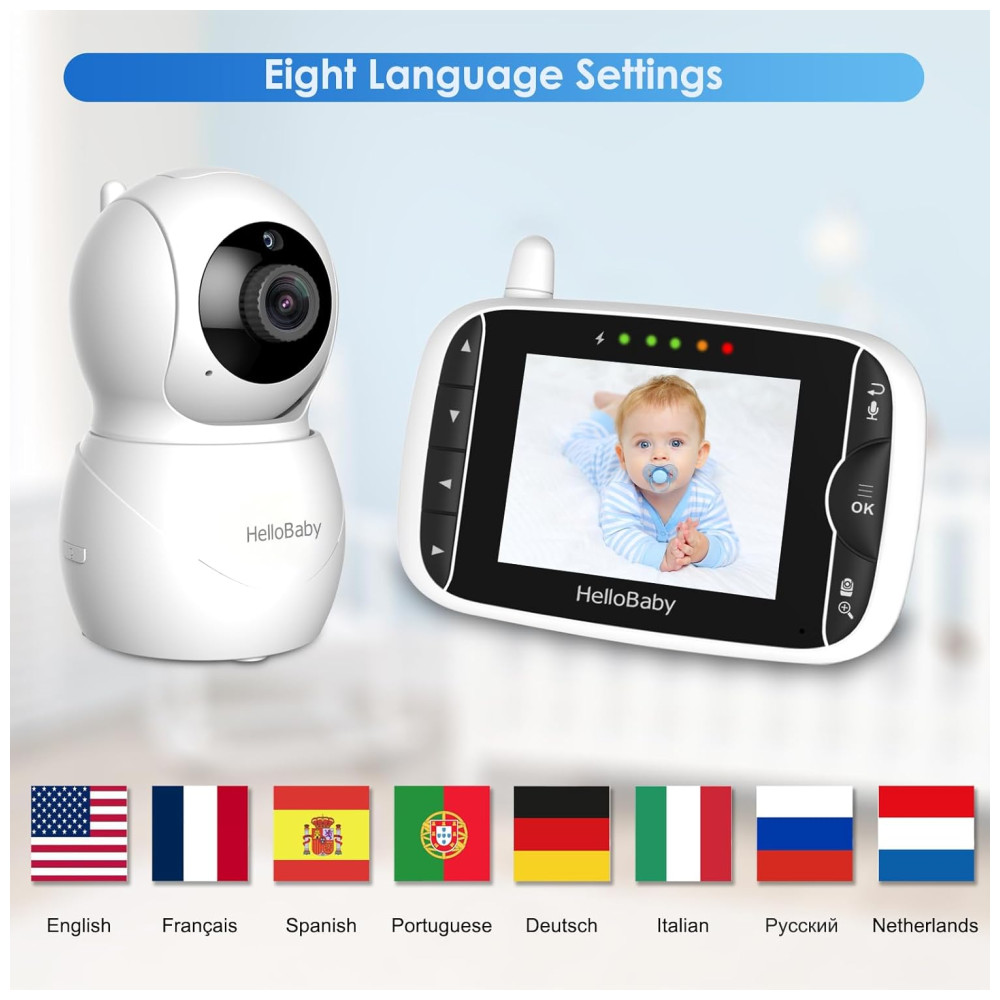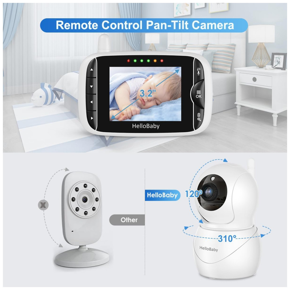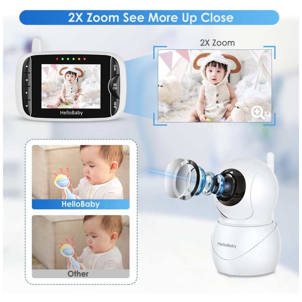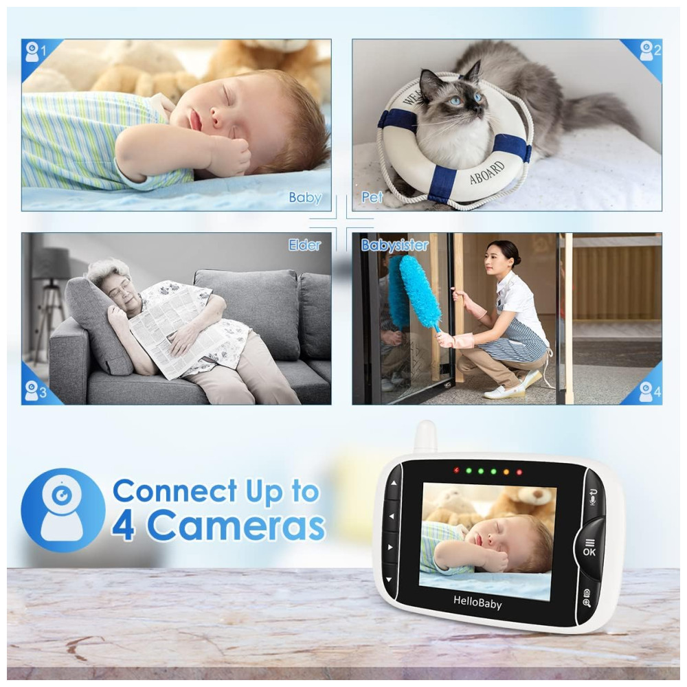 HelloBaby Monitor Com Câmera E Áudio Tela IPS LCD Vídeo Sem WiFi Visão Noturna Infravermelha Temperatura Canções De Ninar Áudio.