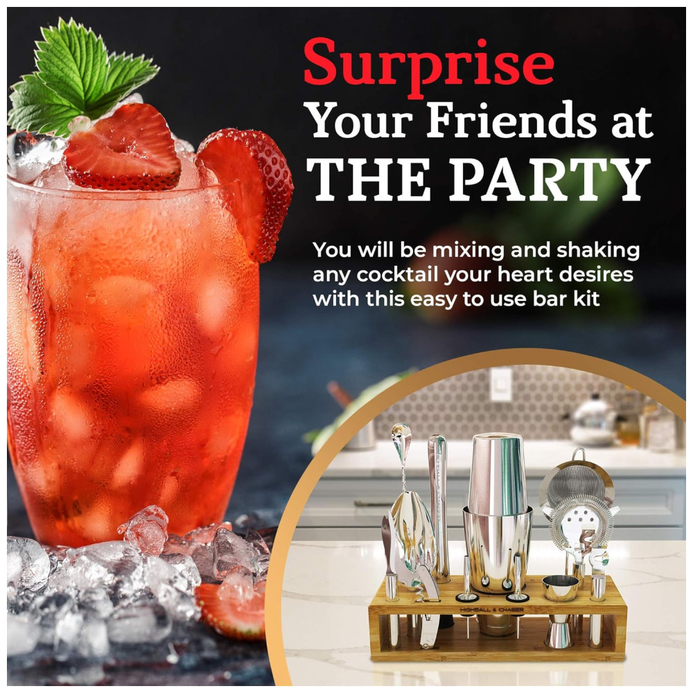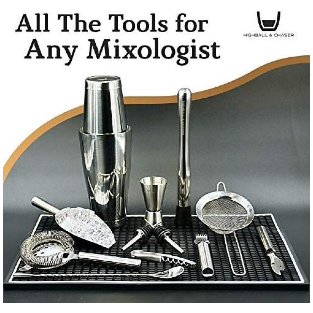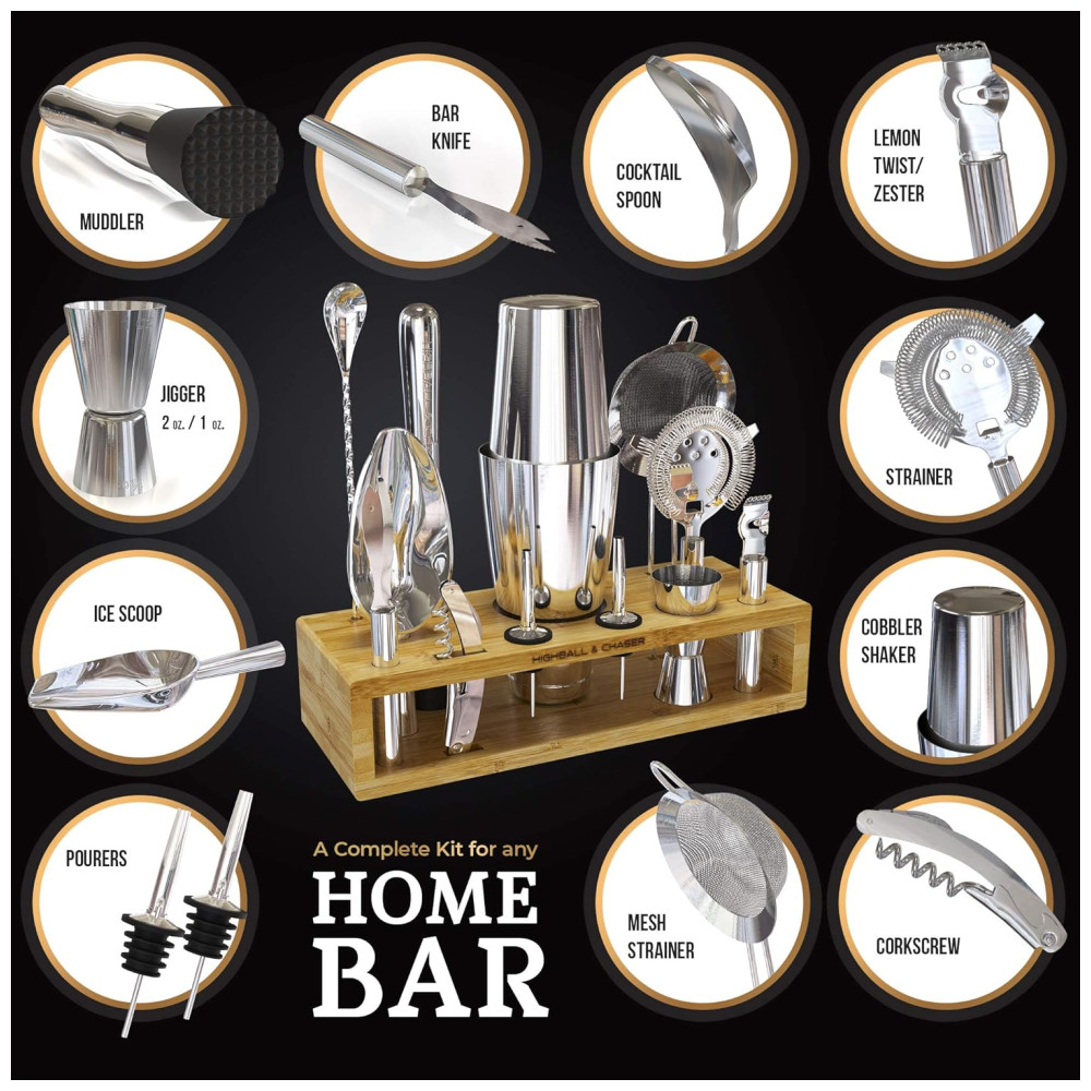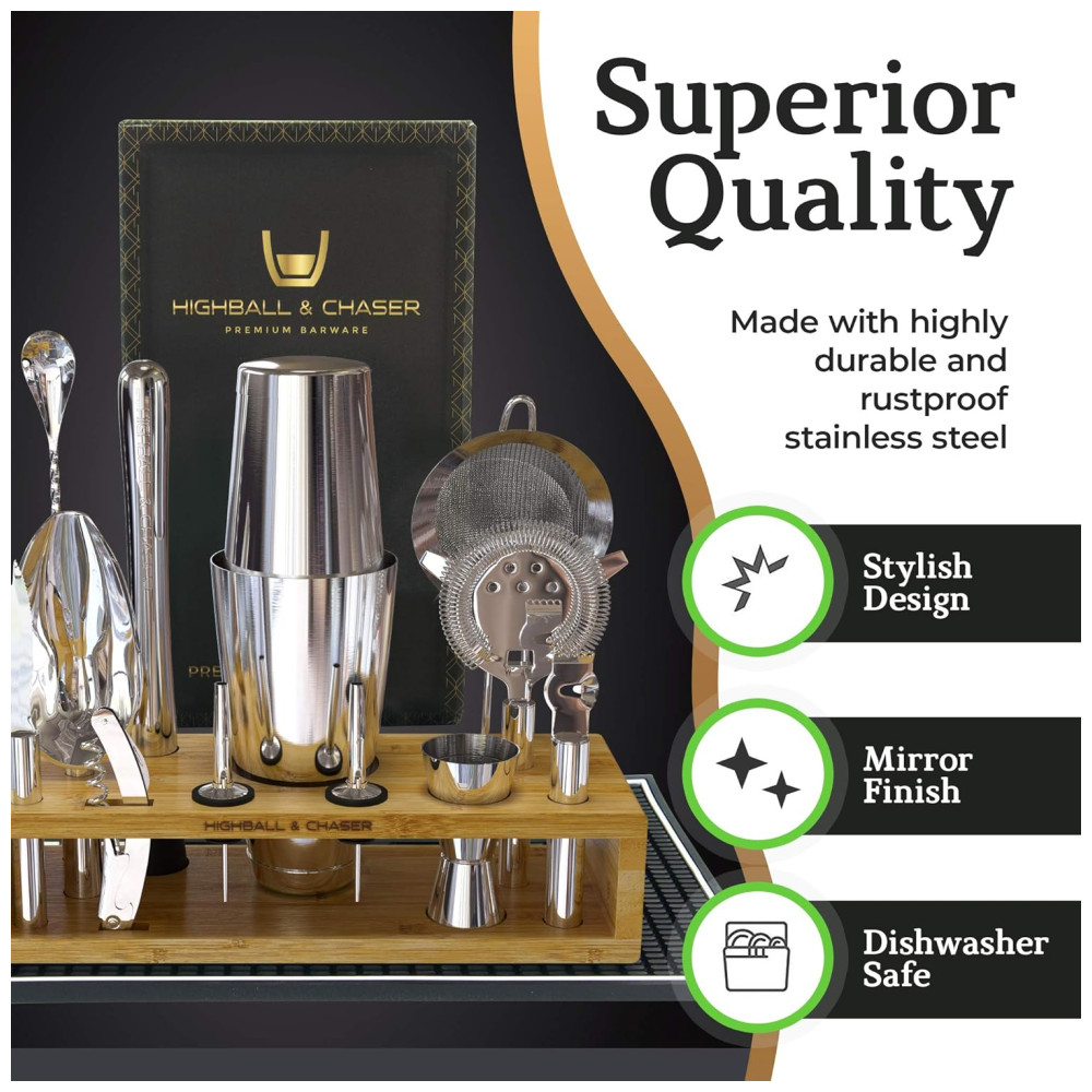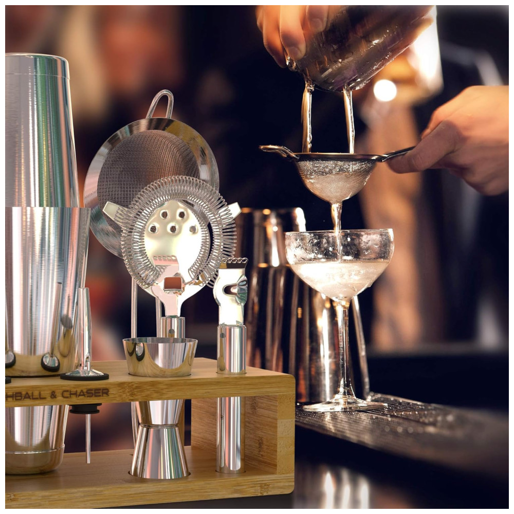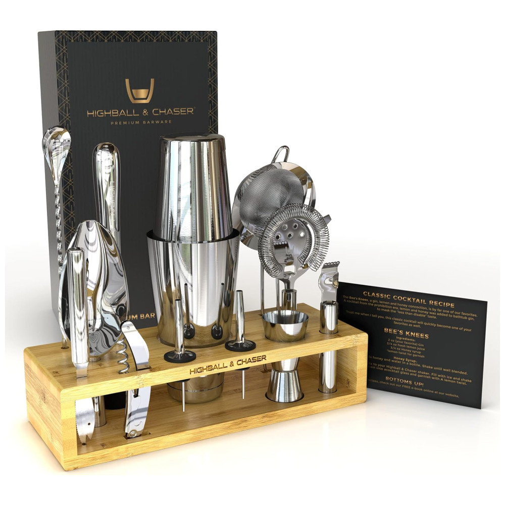 Highball Chaser Kit Bn Profissional 13 Peças em Aço Inoxidável com Suporte de Madeira