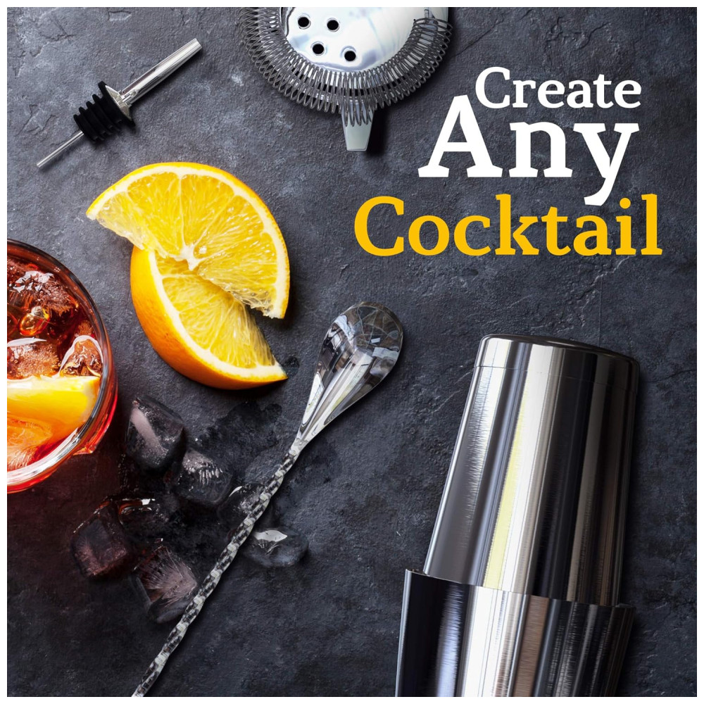 CONJUNTO DE BARRAS MAIS COMPLETO DISPONÍVEL Não se contente com um kit de bn que está incompleto. O nosso inclui uma faca de barra para cortar limões e limas, um zester de limão com uma faca de canal recém projetada para criar facilmente torções de limão e lima e uma peneira de malha fina para manter toda a espuma e polpa fora dessas belas bebidas diretas.