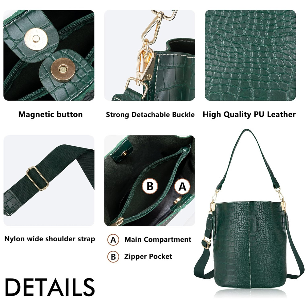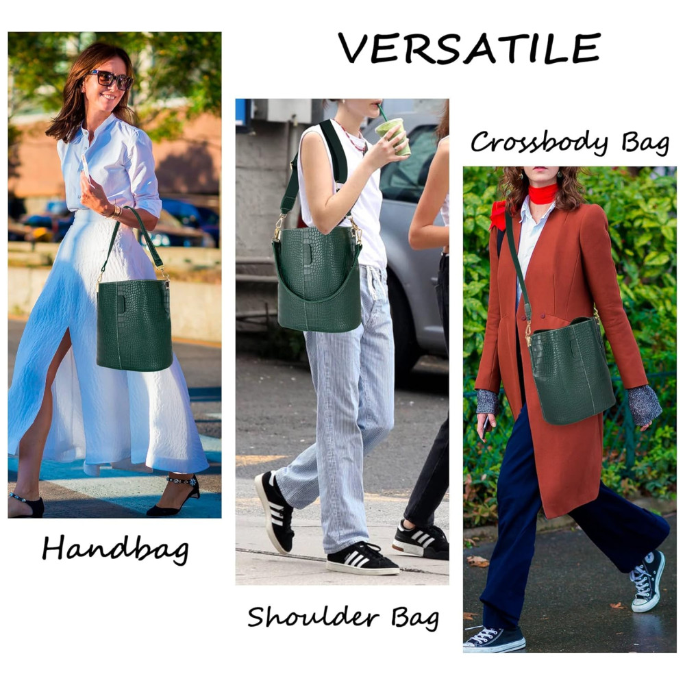 MATERIAL Fabricado em couro PU de alta qualidade, macio ao toque, respirável e leve, com padrão de pele de crocodilo, moderno e requintado. Hardware e zíperes de metal de alta qualidade e avançados permanecem em boas condições mesmo após um longo uso.